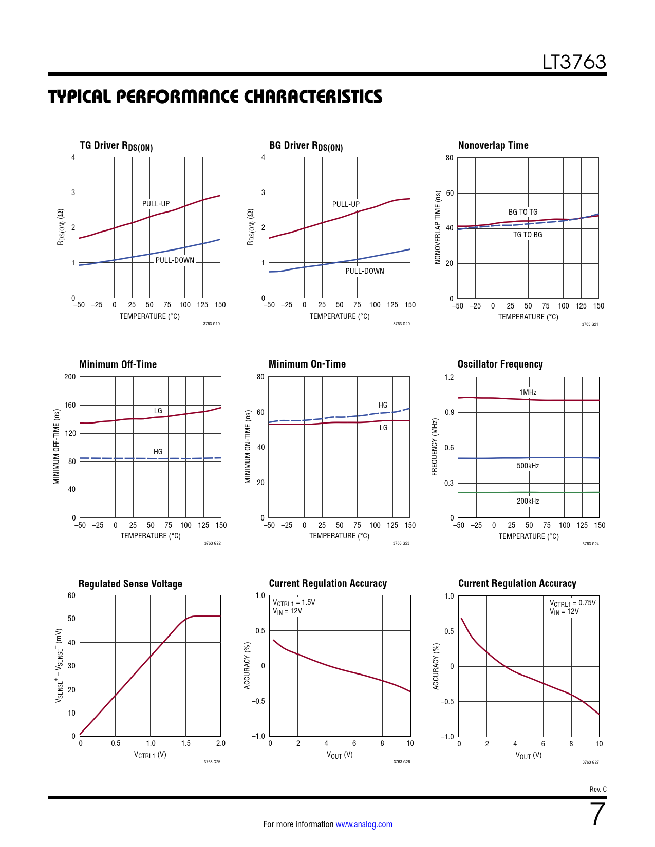 4 4 80 3 3 60 PULL-UP PULL-UP BG TO TG (Ω) (Ω) 2 2 40 TG TO BG R DS(ON) R DS(ON) 1 PULL-DOWN 1 NONOVERLAP TIME (ns) 20 PULL-DOWN 0 0 0 –50 –25 0 25 50 75 100 125 150 –50 –25 0 25 50 75 100 125 150 –50 –25 0 25 50 75 100 125 150 TEMPERATURE (°C) TEMPERATURE (°C) TEMPERATURE (°C) 3763 G19 3763 G20 3763 G21