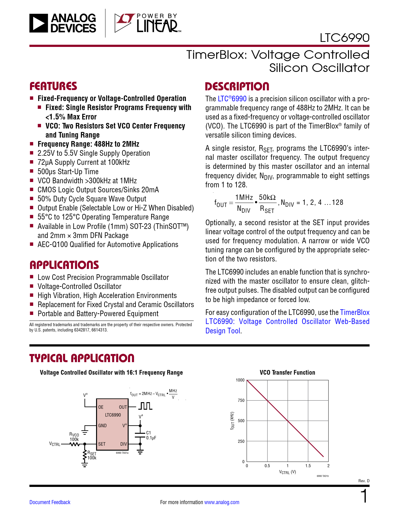 Datasheet LTC6990 Analog Devices, Revisión: D