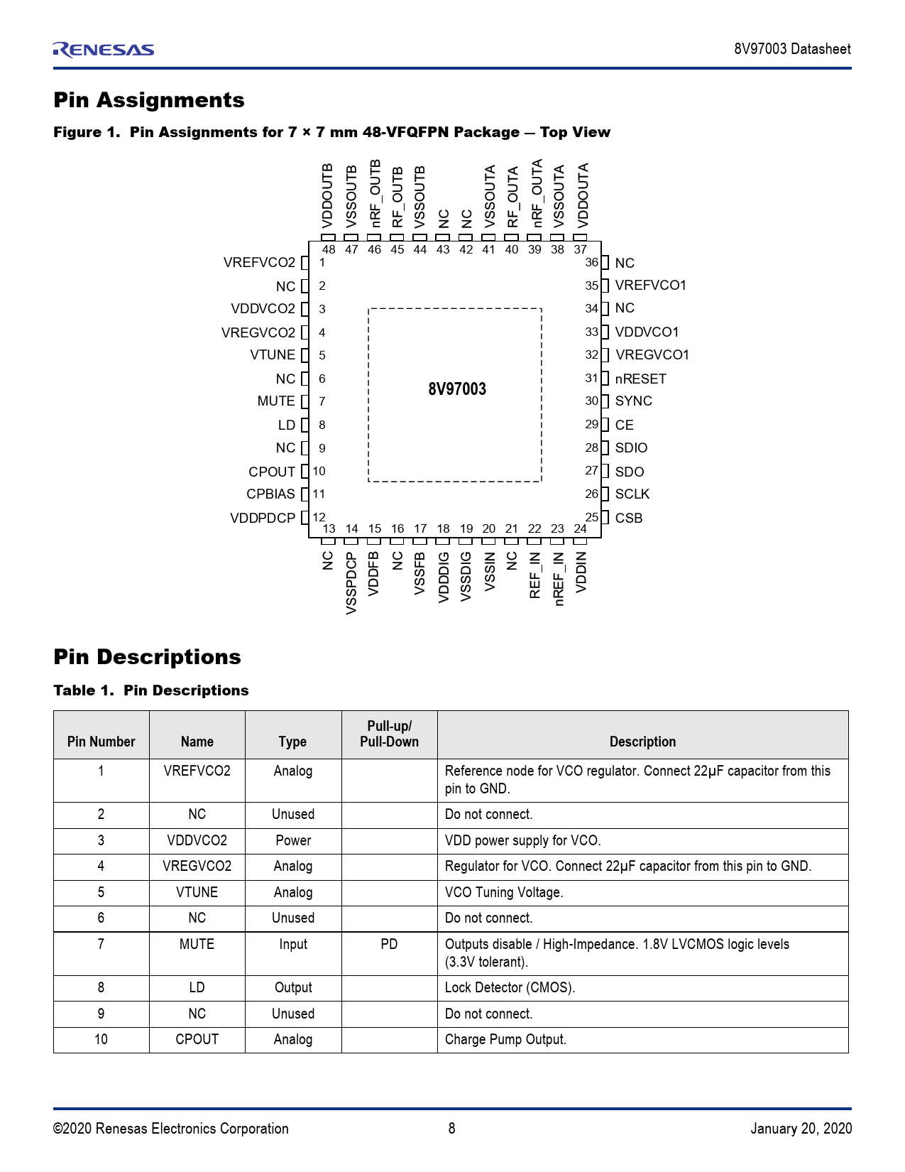 Pin Assignments Figure 1. Pin Assignments for 7 × 7 mm 48-VFQFPN Package ― Top View. 8V97003