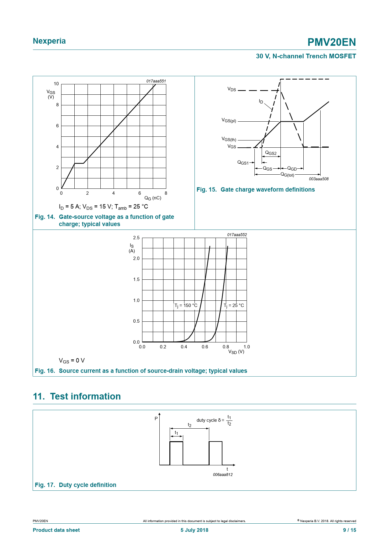 | Páginas / Página | 15 / 9 — Nexperia. PMV20EN. 30 V, N-channel Trench MOSFET. Fig. 15. Gate charge … |