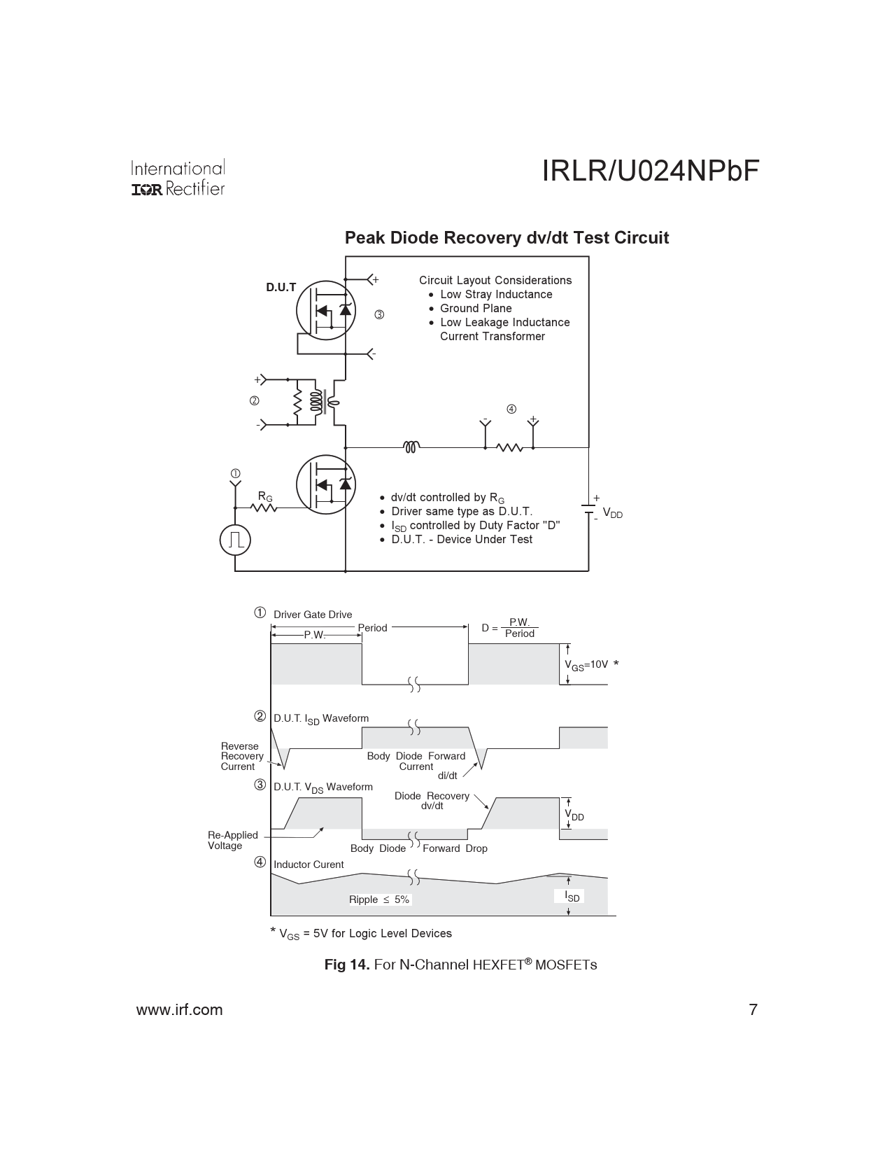 | Páginas / Página | 11 / 7 — Peak Diode Recovery dv/dt Test Circuit. D.U.T. Fig 14 |