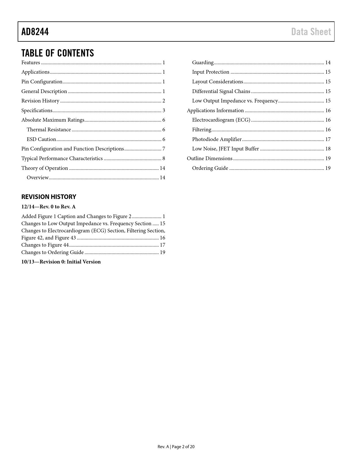 Páginas / Página20 / 2 — AD8244. Data Sheet. TABLE OF CONTENTS. REVISION HISTORY 12/14—Rev. 0 to …