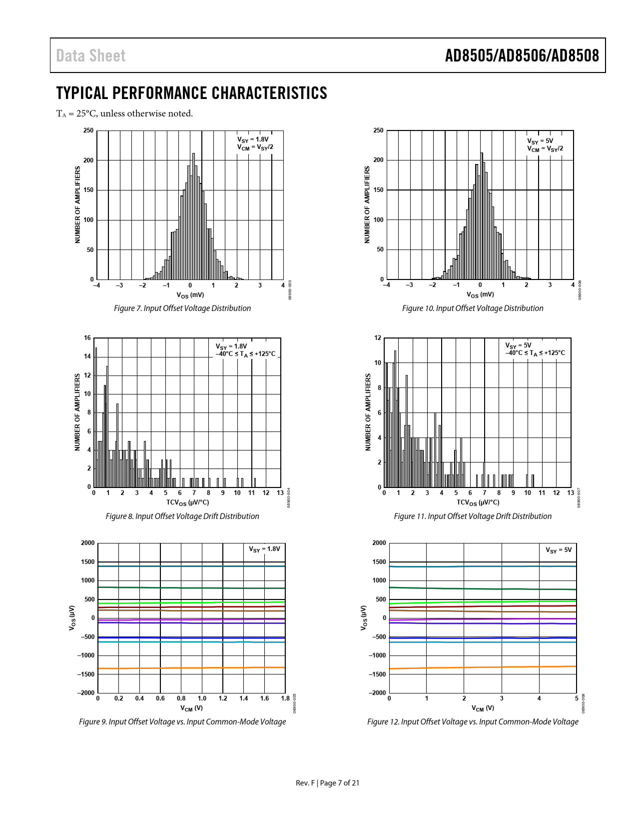Data Sheet. AD8505/AD8506/AD8508. TYPICAL PERFORMANCE CHARACTERISTICS. 250. VSY = 1.8V. VSY = 5V. VCM = VSY/2. 200. S R. L 150. 150. M A. AM F