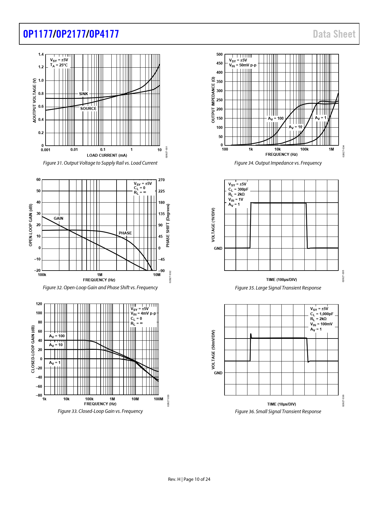 26 0 026 Figure 32. Open-Loop Gain and Phase Shift vs. Frequency Figure 35. Large Signal Transient Response