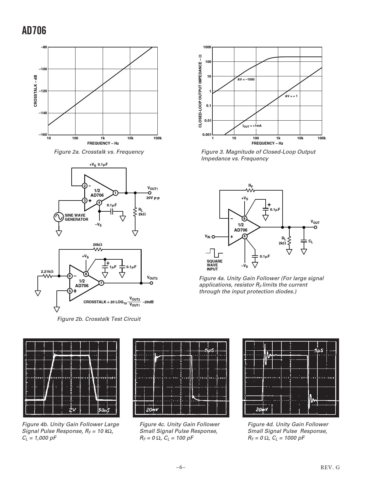 AD706. –80. 1000. 100. –100. AV = –1000. –120. AV = + 1. CROSSTALK – dB. 0.1. –140. 0.01. CLOSED-LOOP OUTPUT IMPEDANCE –. IOUT = +1mA. –160. 0.001. 10k