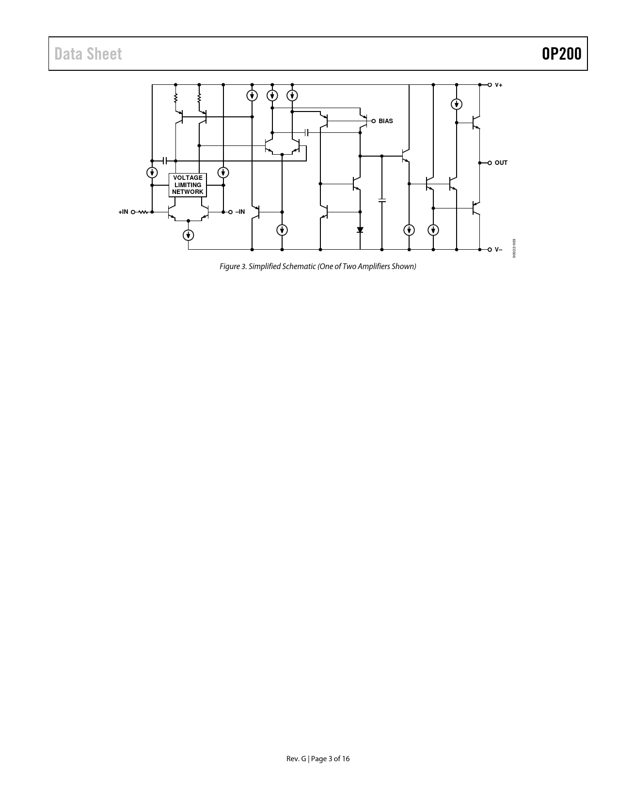 Páginas / Página16 / 3 — Data Sheet. OP200. BIAS. OUT. VOLTAGE. LIMITING. NETWORK. +IN. –IN