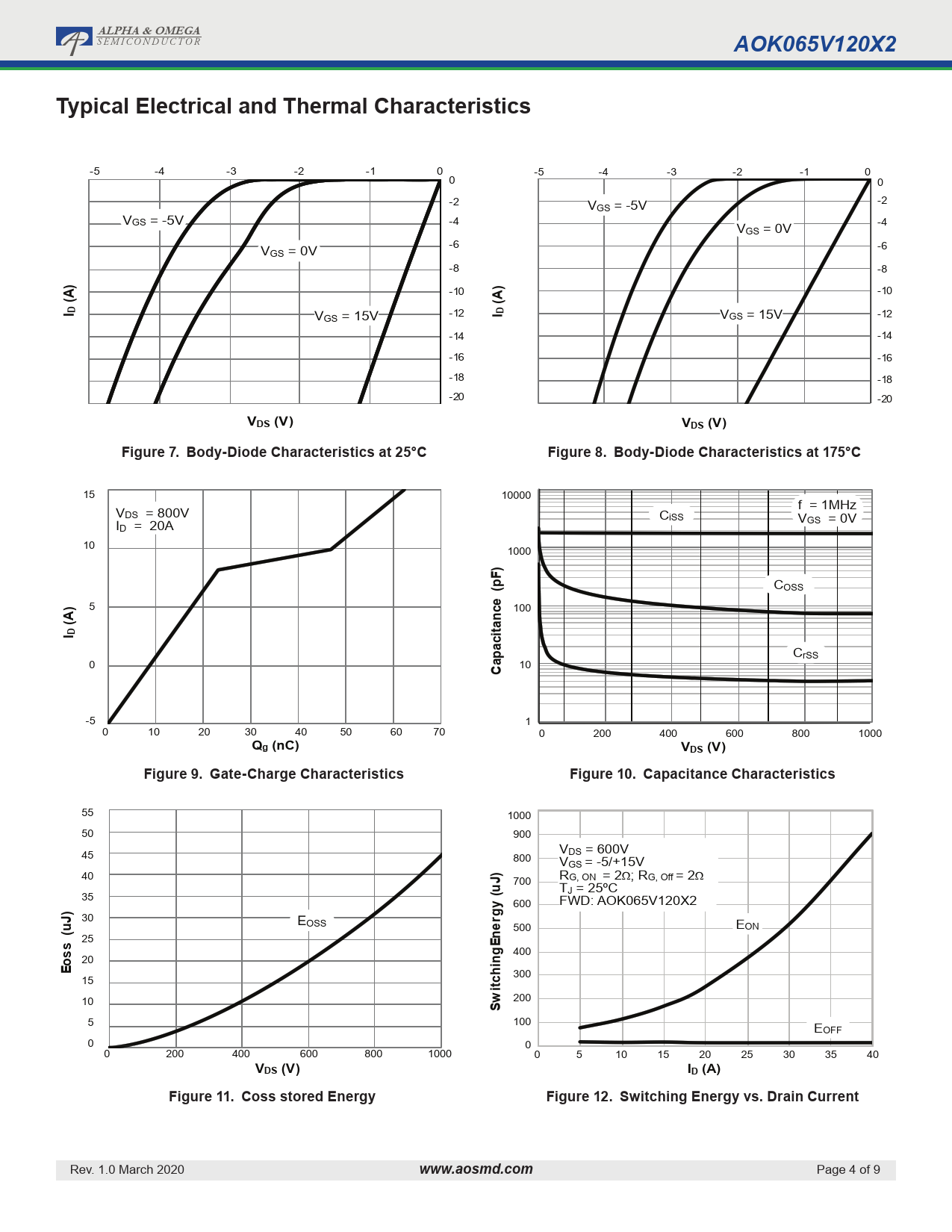 | Páginas / Página | 9 / 4 — ALPHA & OMEGA. AOK065V120X2. Typical Electrical and Thermal … |