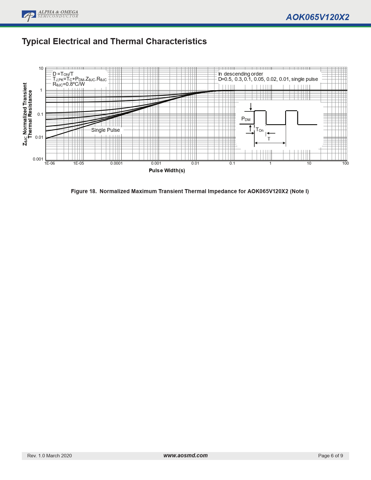 ALPHA & OMEGA AOK065V120X2 Typical Electrical and Thermal Characteristics ransient Normalized T Thermal Resistance ZθJC