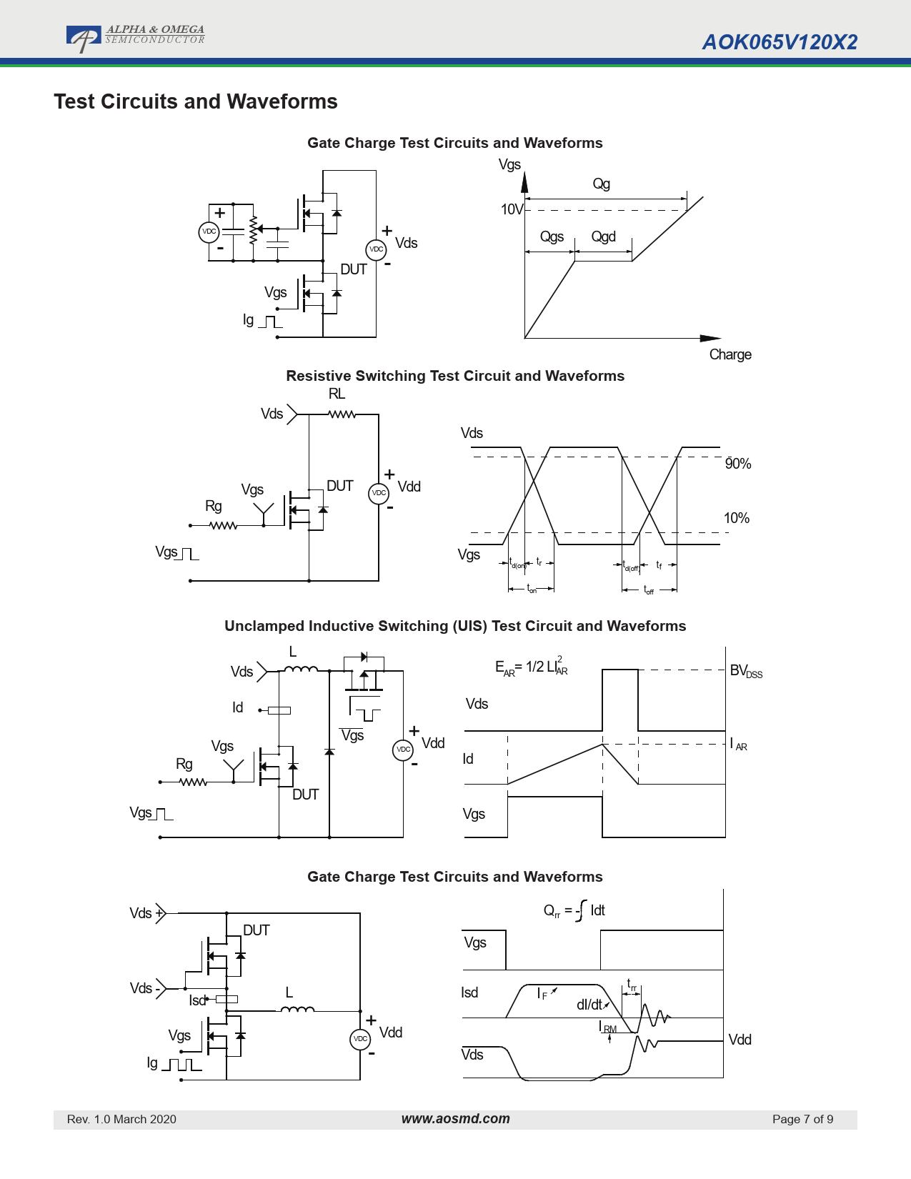 Páginas / Página9 / 7 — ALPHA & OMEGA. AOK065V120X2. Test Circuits and Waveforms. Gate Charge …