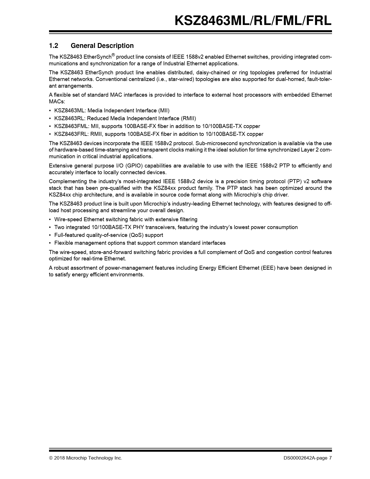 Páginas / Página213 / 7 — KSZ8463ML/RL/FML/FRL. 1.2. General Description