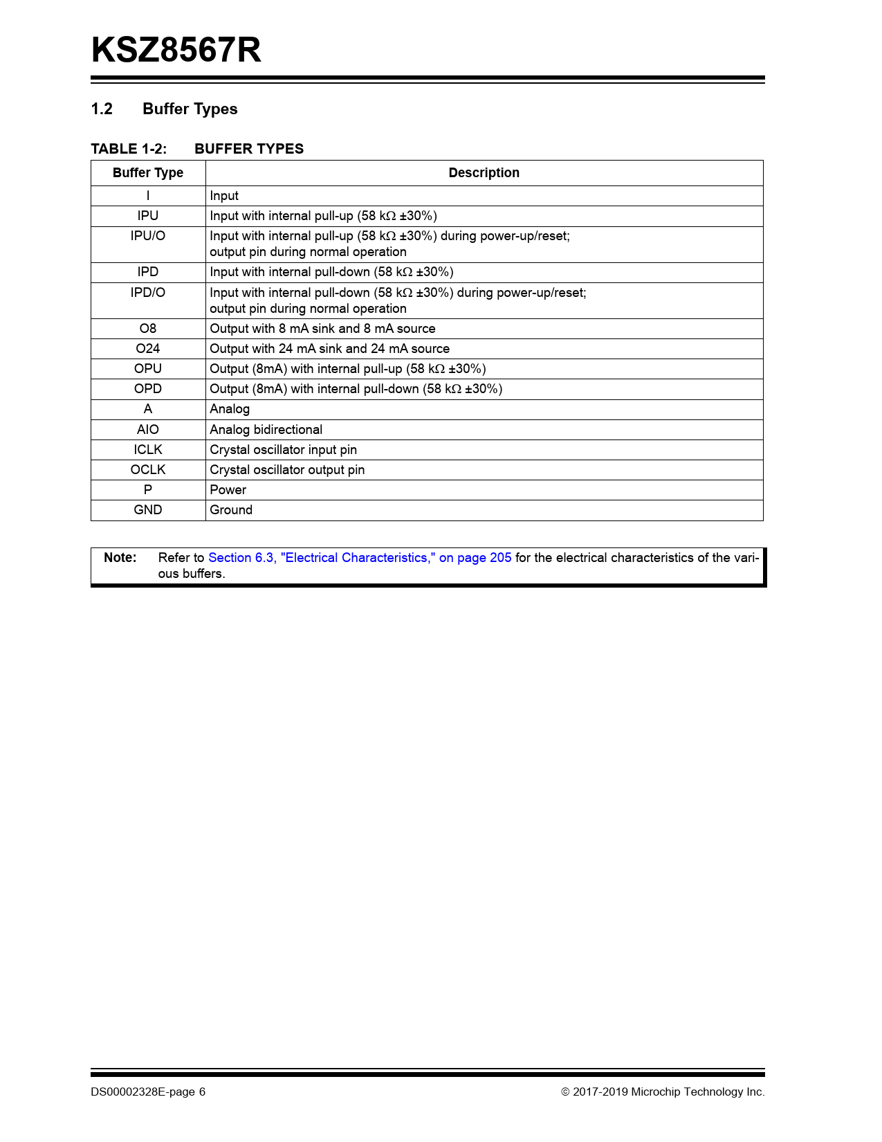 | Páginas / Página | 234 / 6 — KSZ8567R. 1.2. Buffer Types. TABLE 1-2:. BUFFER TYPES. Buffer Type. … |