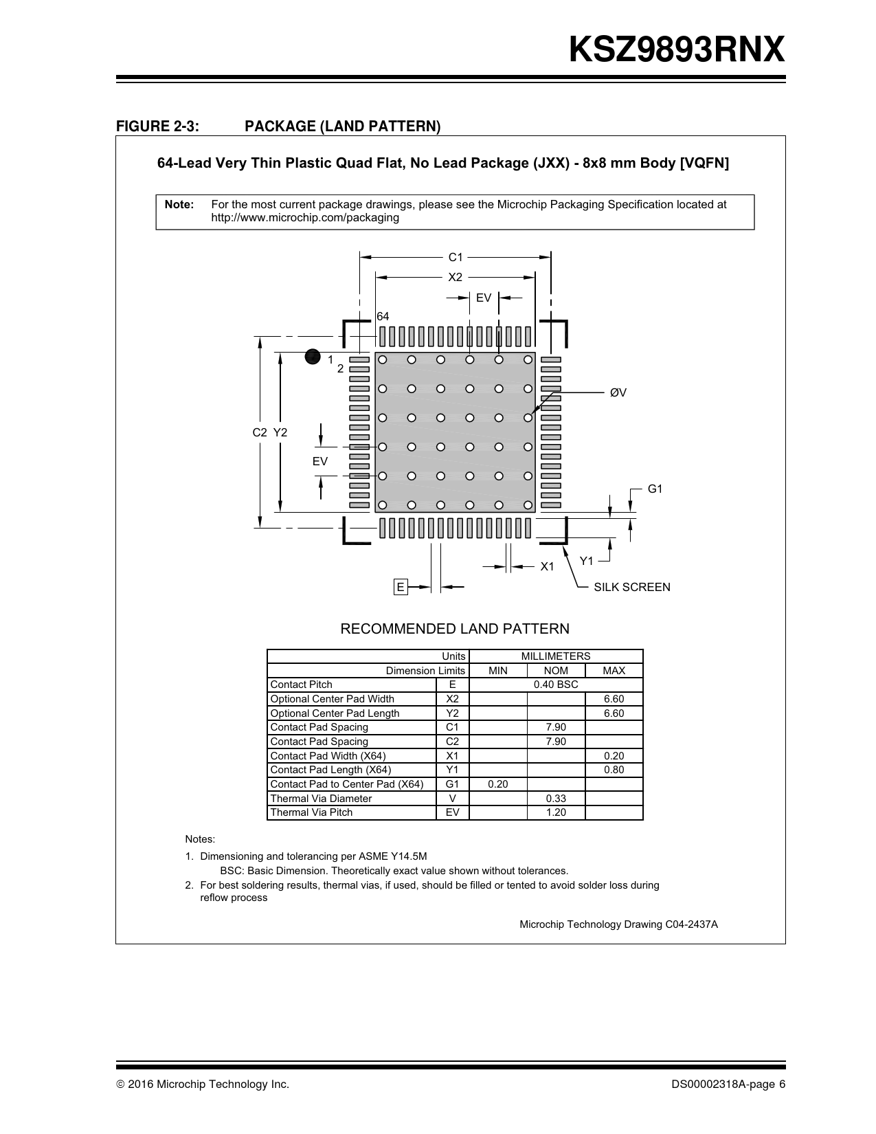 KSZ9893RNX FIGURE 2-3: PACKAGE (LAND PATTERN) 64-Lead Very Thin Plastic Quad Flat, No Lead Package (JXX) - 8x8 mm Body [VQFN] Note: