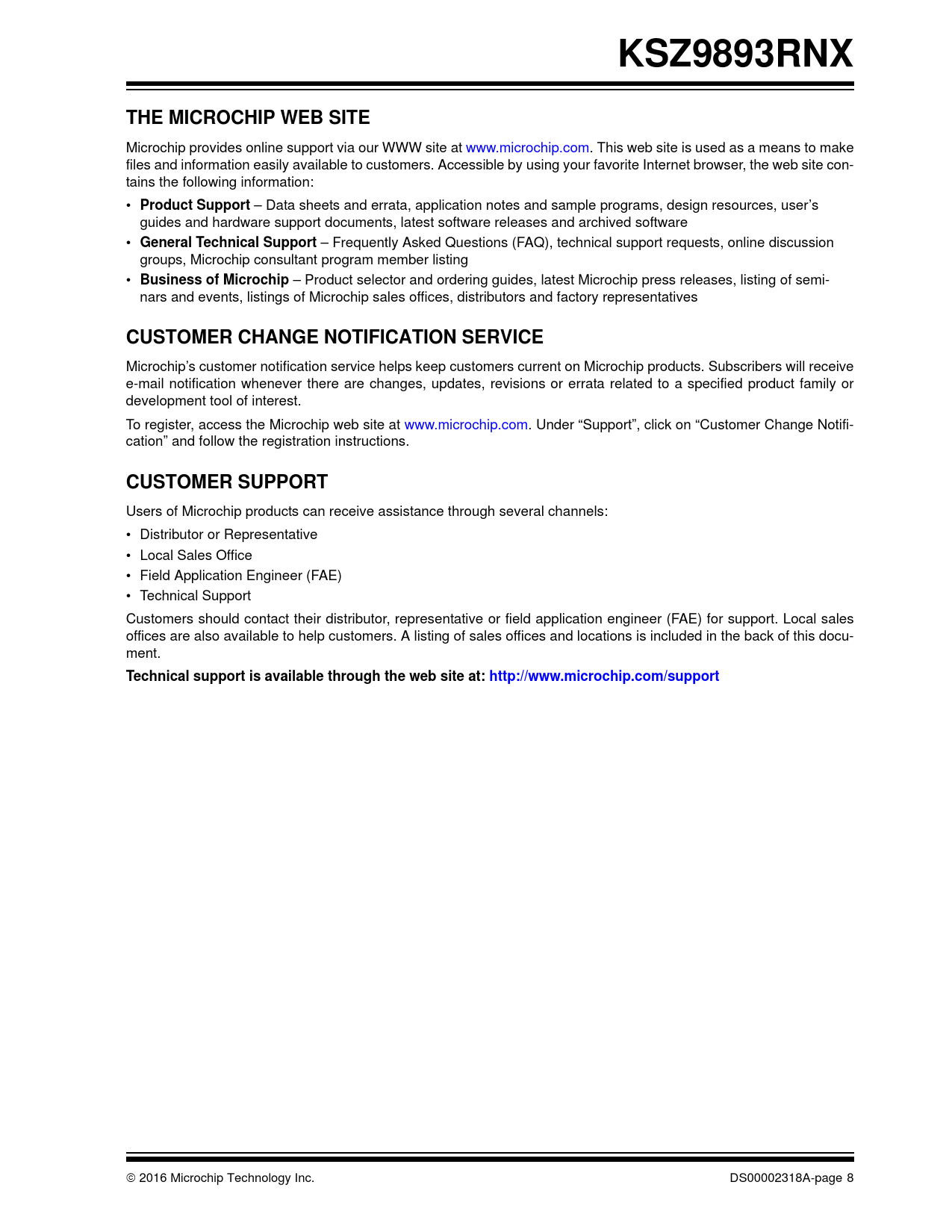 Páginas / Página11 / 8 — KSZ9893RNX. THE MICROCHIP WEB SITE. Product Support. General Technical …