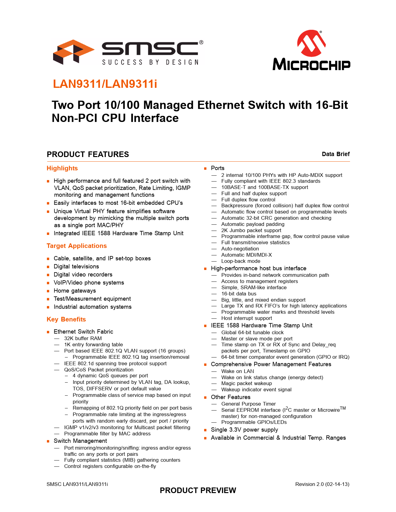 SMSC LAN9311/LAN9311i PRODUCT PREVIEW Revision 2.0 (02-14-13)