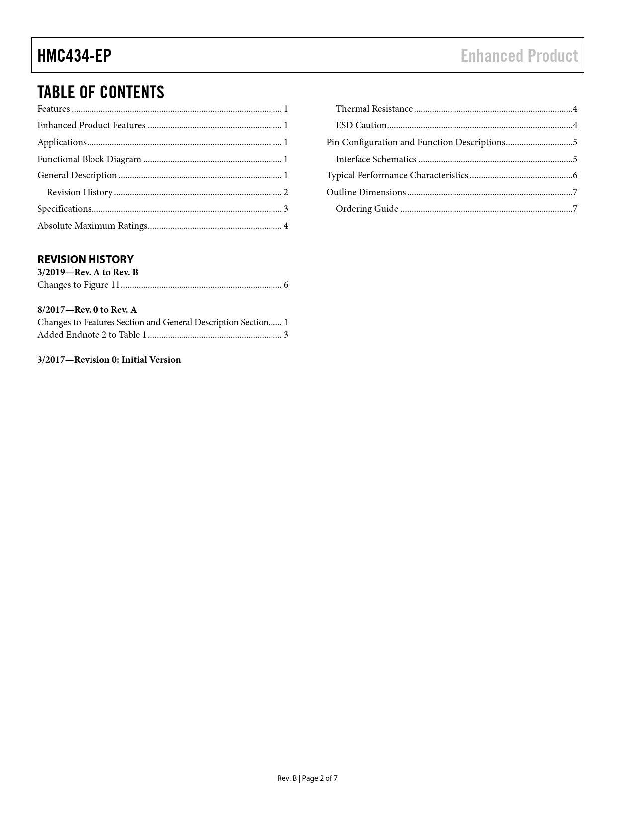 HMC434-EP Enhanced Product TABLE OF CONTENTS REVISION HISTORY 3/2019—Rev A to Rev B 8/2017—Rev 0 to Rev A