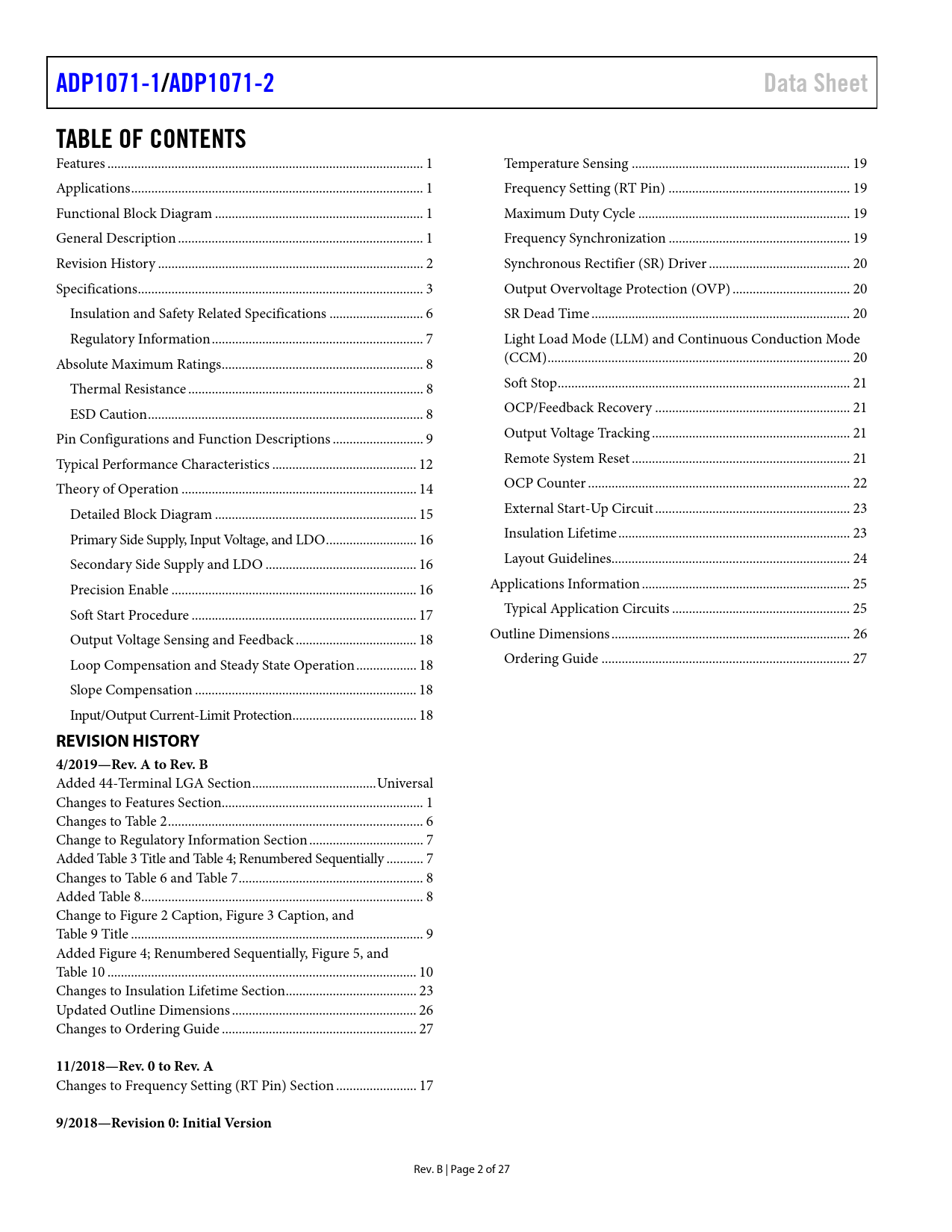 ADP1071-1/. ADP1071-2. Data Sheet. TABLE OF CONTENTS. REVISION HISTORY. 4/2019—Rev. A to Rev. B. 11/2018—Rev. 0 to Rev. A