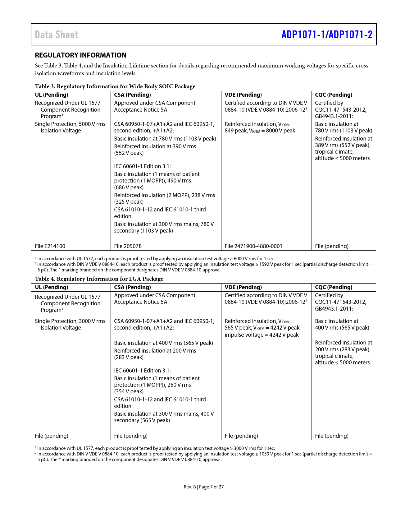 Data Sheet ADP1071-1 /ADP1071-2 REGULATORY INFORMATION