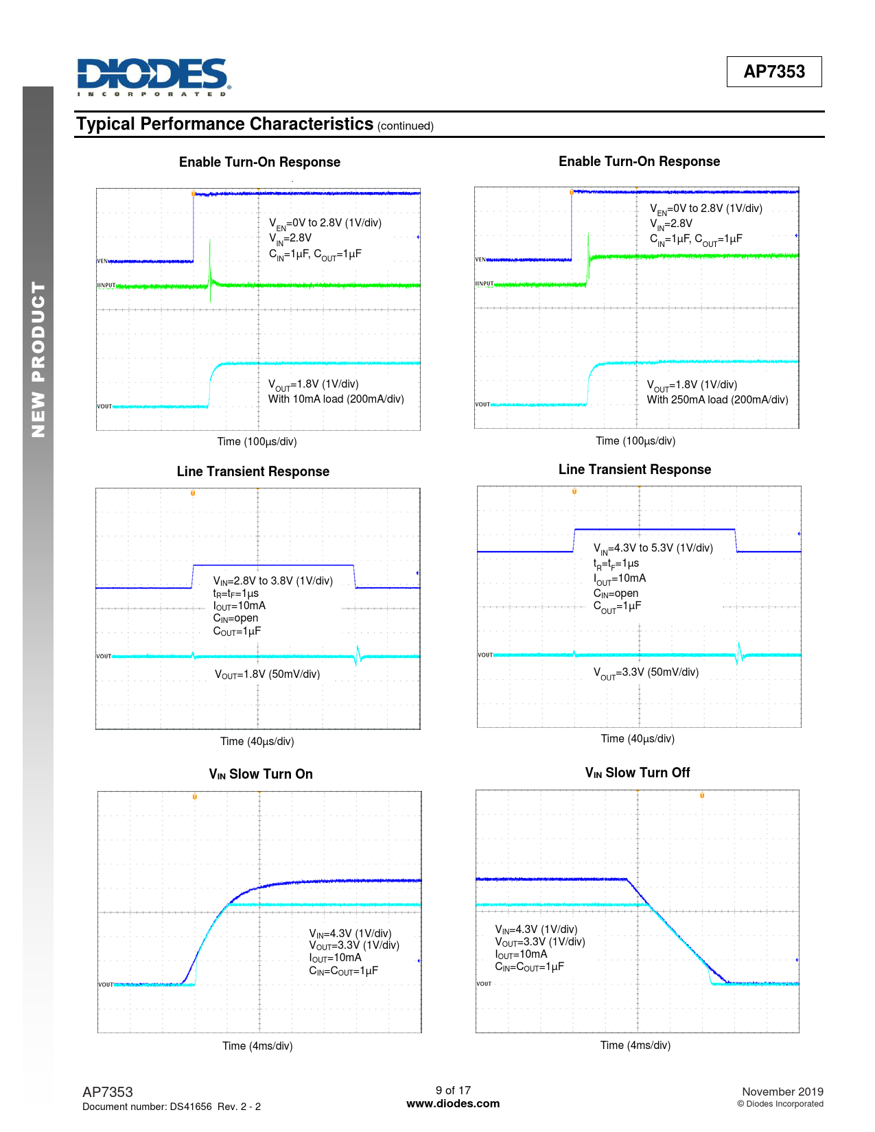 AP7353. Typical Performance Characteristics. Enable Turn-On Response. T C. D O. E N. Line Transient Response. VIN Slow Turn On