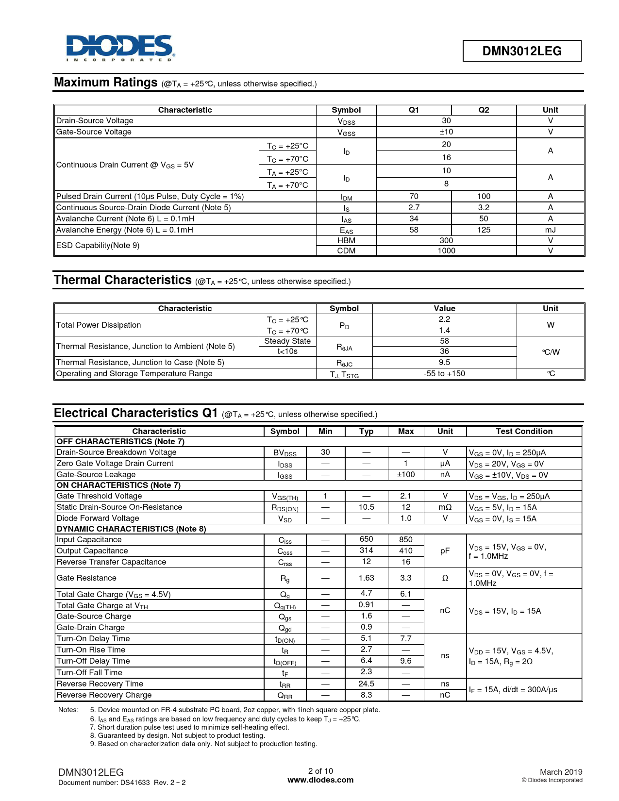 | Páginas / Página | 10 / 2 — DMN3012LEG. Maximum Ratings. Characteristic. Symbol. Unit. Thermal … |