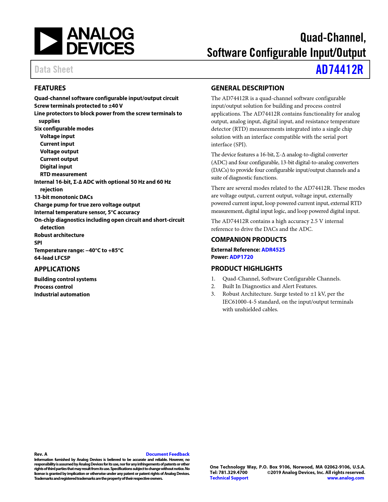 Datasheet AD74412R (Analog Devices)