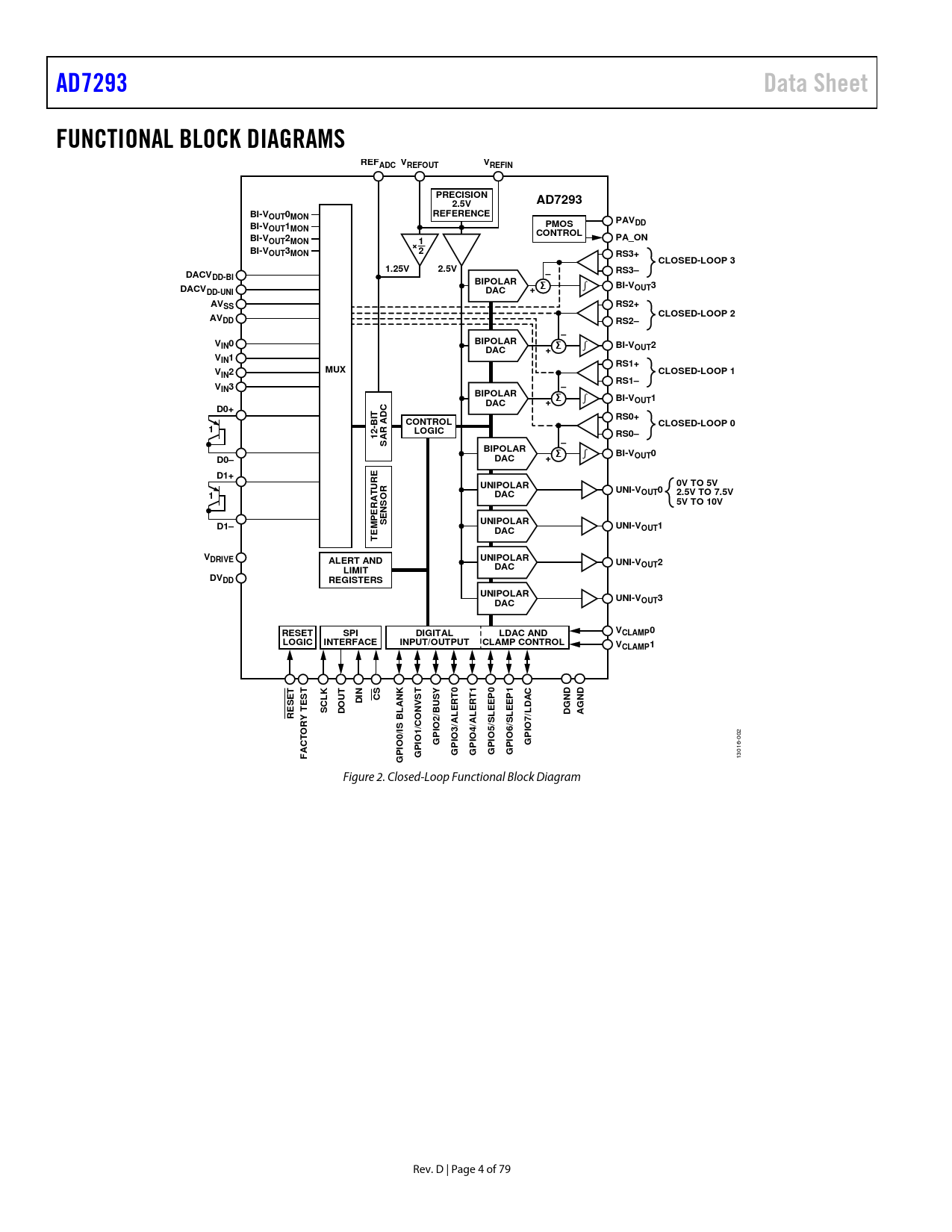 AD7293. Data Sheet. FUNCTIONAL BLOCK DIAGRAMS. REF. ADC. REFOUT. REFIN. PRECISION. 2.5V. BI-VOUT0MON. REFERENCE. PAV. BI-V. PMOS. OUT1MON. CONTROL