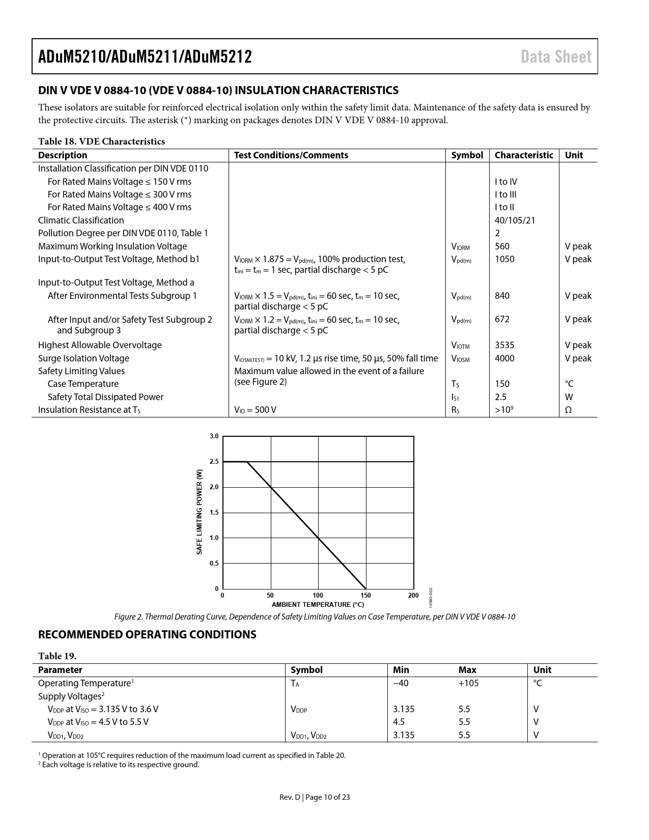 ADuM5210/ADuM5211/ADuM5212 Data Sheet DIN V VDE V 0884-10 (VDE V 0884-10) INSULATION CHARACTERISTICS