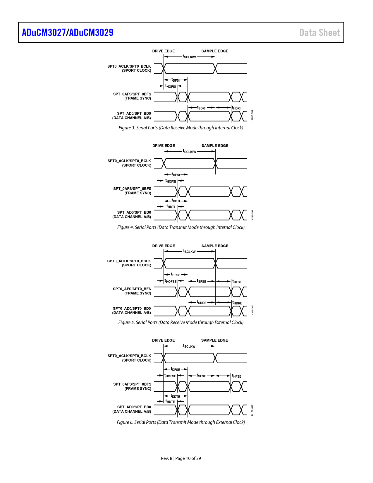 ADuCM3027. /ADuCM3029. Data Sheet. DRIVE EDGE. SAMPLE EDGE. tSCLKIW. SPT0_ACLK/SPT0_BCLK. (SPORT CLOCK). tDFSI. tHOFSI. SPT_0AFS/SPT_0BFS