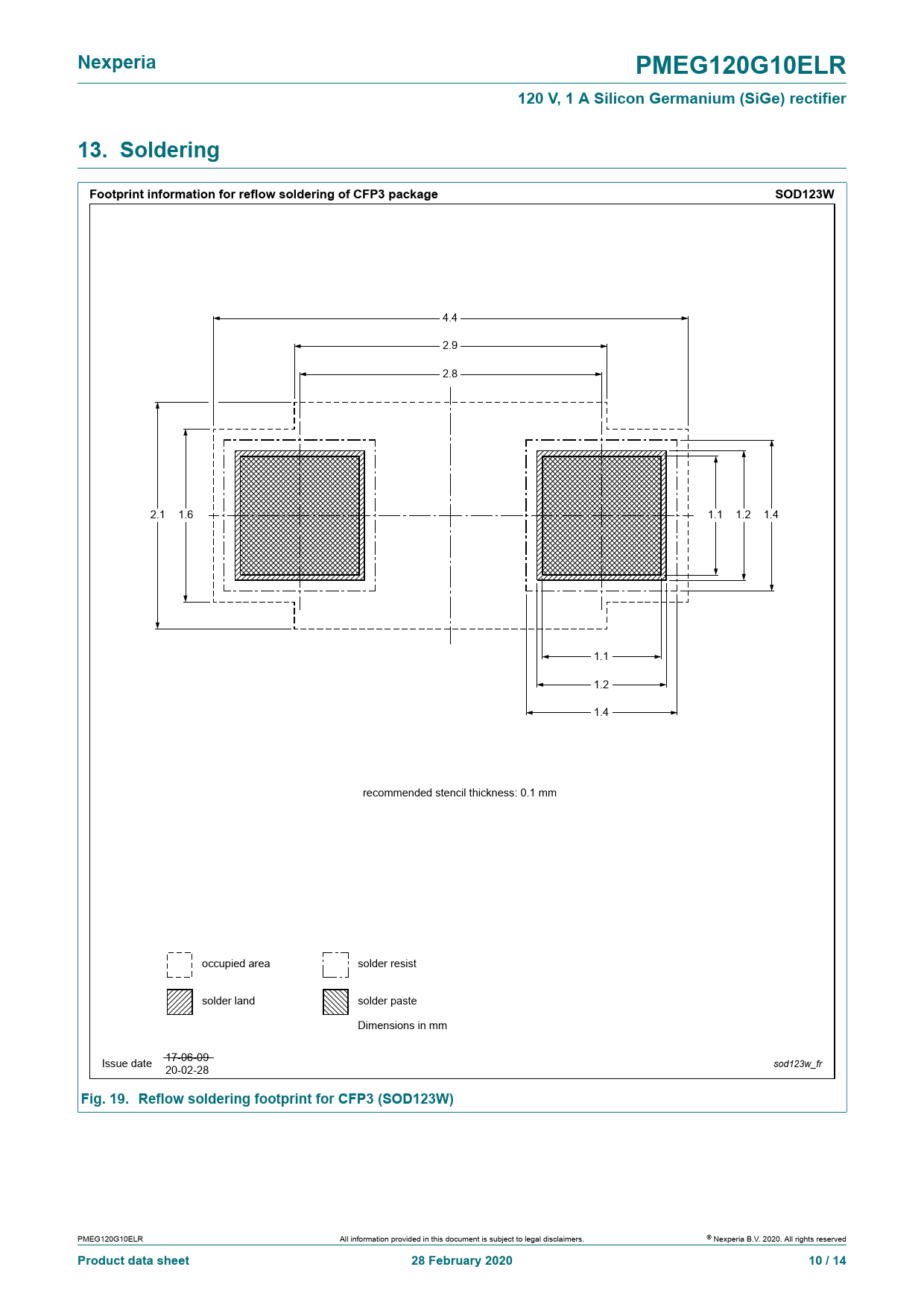 Nexperia. PMEG120G10ELR. 120 V, 1 A Silicon Germanium (SiGe) rectifier. 13. Soldering