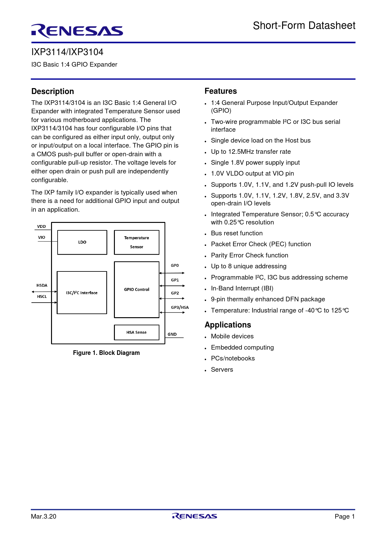 Short-Form Datasheet IXP3114, IXP3104 Renesas, Revisión: 20200303