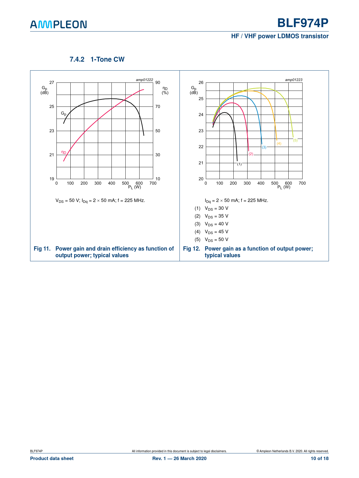 | Páginas / Página | 18 / 10 — BLF974P. HF / VHF power LDMOS transistor. 7.4.2 1-Tone CW. Fig 11. Power … |