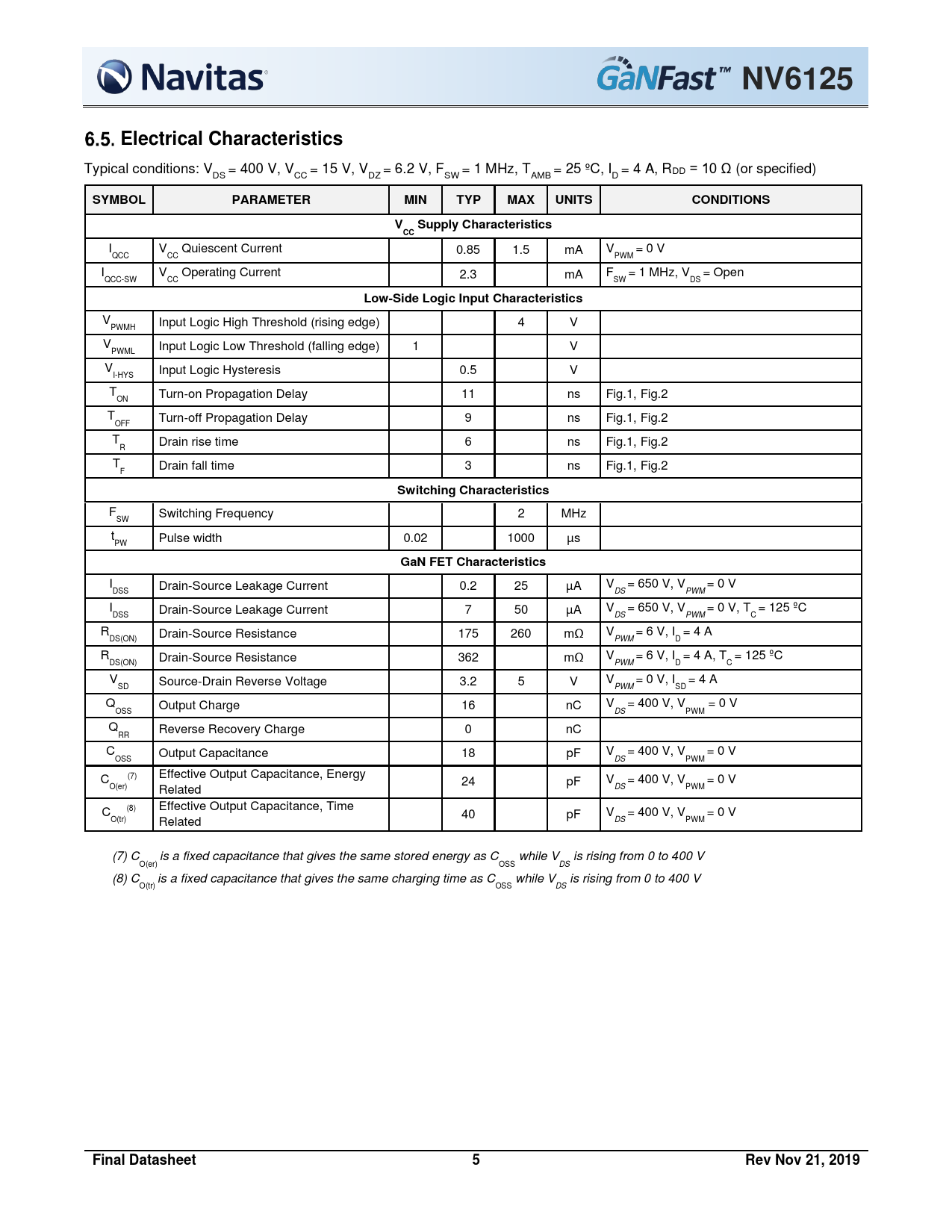 Datasheet NV6125 (Navitas Semiconductor) - 5