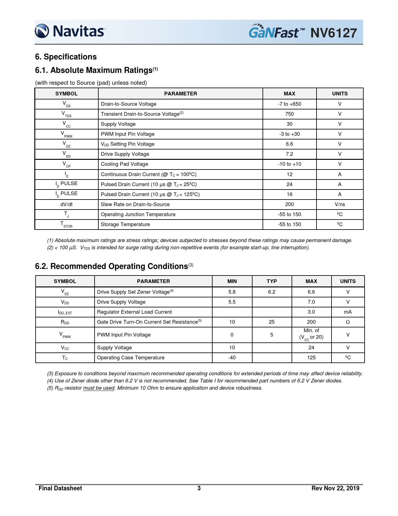 Datasheet NV6127 (Navitas Semiconductor) - 3