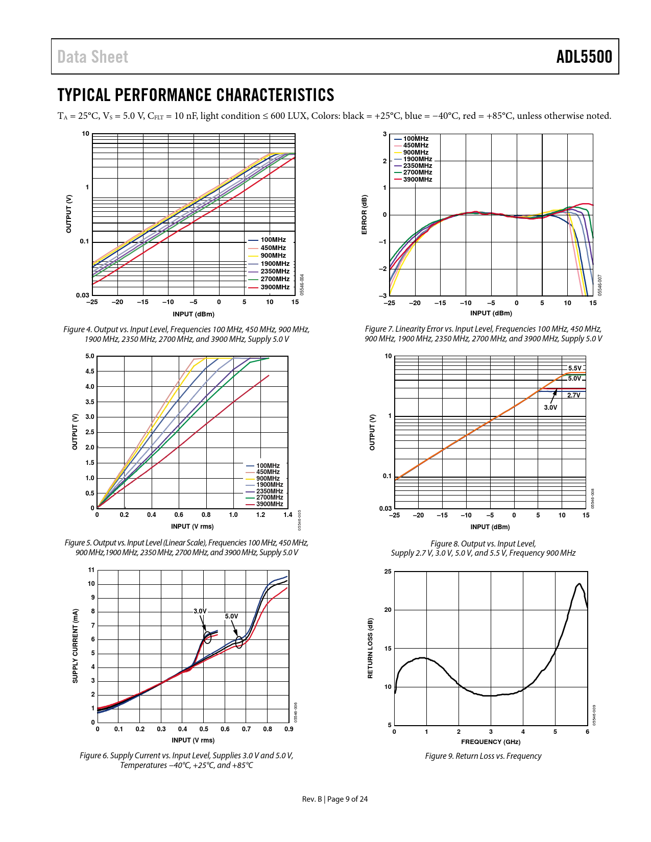 | Páginas / Página | 24 / 9 — Data Sheet. ADL5500. TYPICAL PERFORMANCE CHARACTERISTICS. 100MHz 450MHz … |