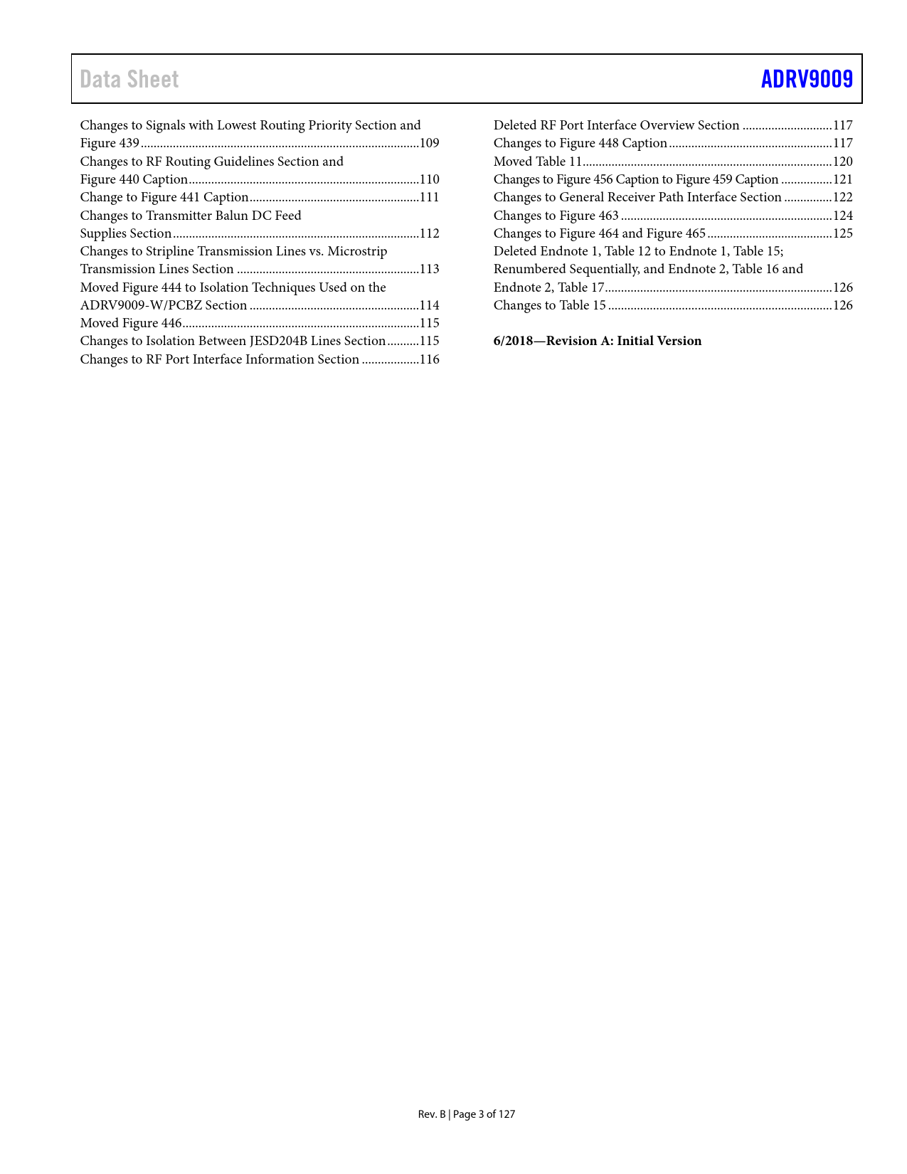 Páginas / Página127 / 3 — Data Sheet. ADRV9009. 6/2018—Revision A: Initial Version