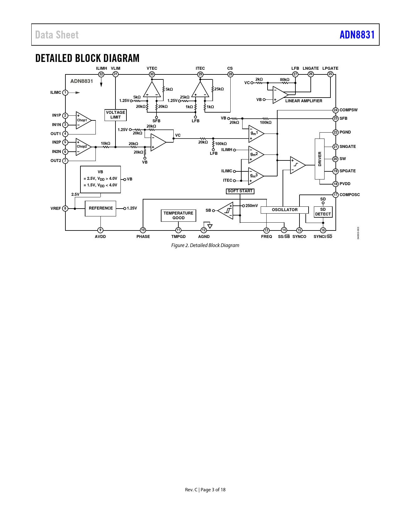 Data Sheet. ADN8831. DETAILED BLOCK DIAGRAM. ILIMH. VLIM. VTEC. ITEC. LFB LNGATE LPGATE. 2kΩ. 80kΩ. 5kΩ. 25kΩ. ILIMC 1. 1.25V. LINEAR AMPLIFIER. 20kΩ