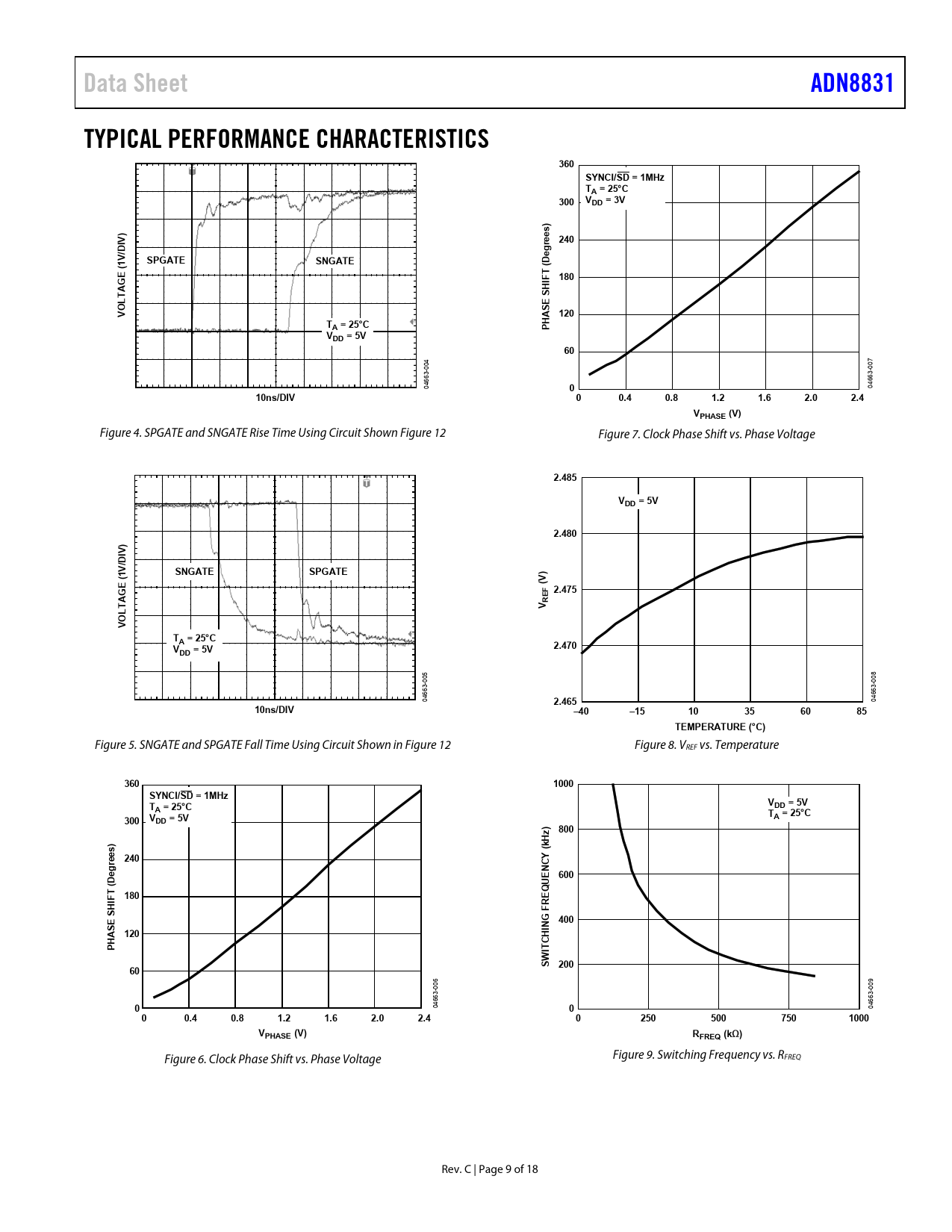 Data Sheet. ADN8831. TYPICAL PERFORMANCE CHARACTERISTICS. 360. SYNCI/SD = 1MHz TA = 25°C. 300. VDD = 3V. ) IV. 240. rees). SPGATE. SNGATE. (1V