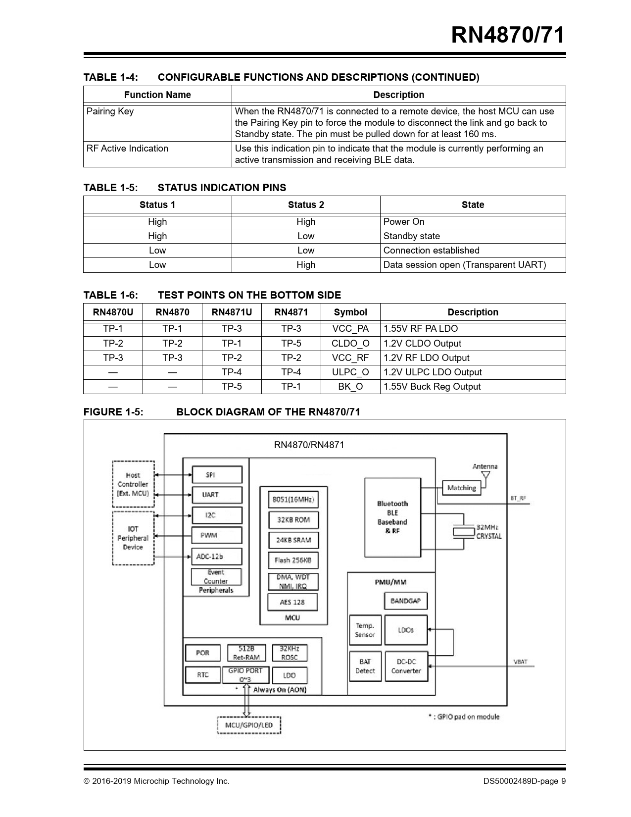 Datasheet RN4870, RN4871 (Microchip) - 9