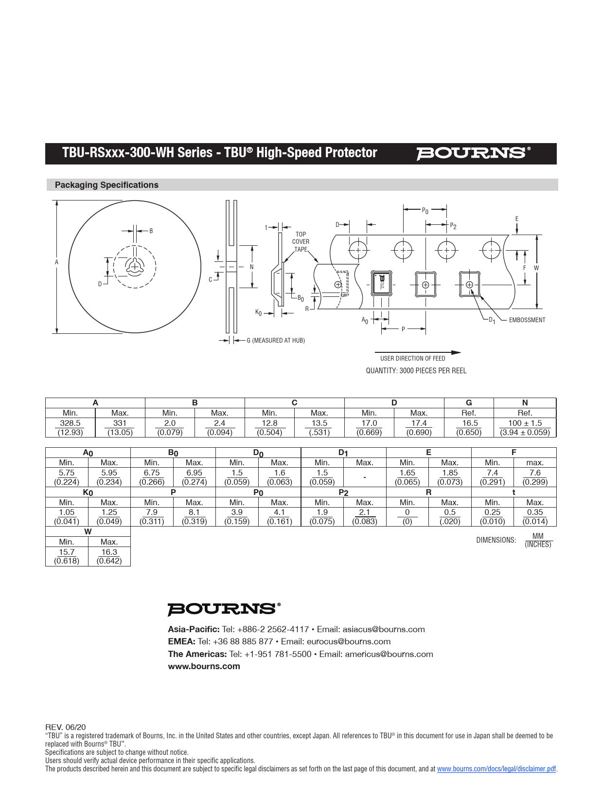 TBU-RSxxx-300-WH Series - TBU® High-Speed Protector Packaging Specifications Asia-Pacific: EMEA: The Americas: