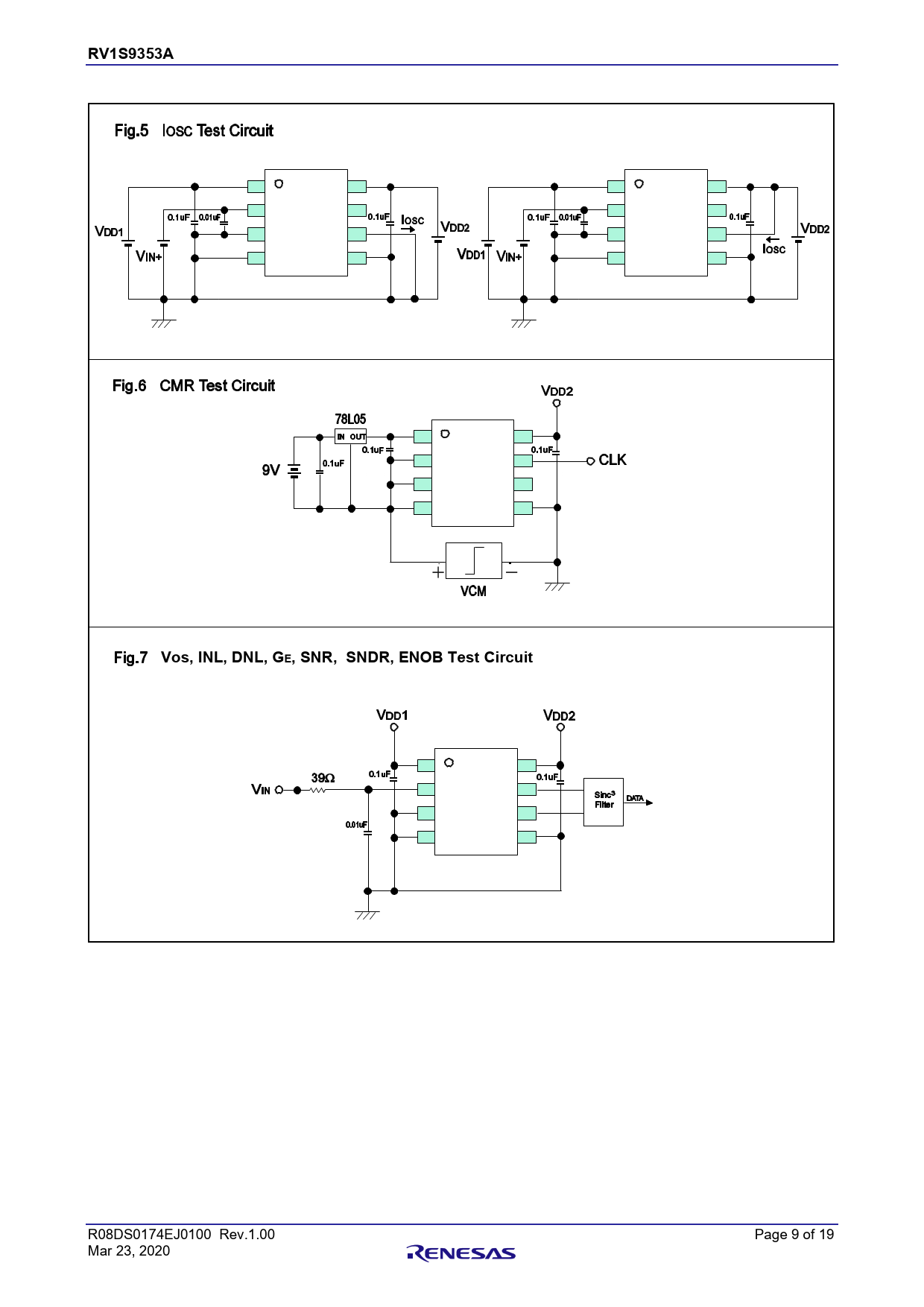 RV1S9353A Chapter Title + - Vos, INL, DNL, GE, SNR, SNDR, ENOB Test Circuit R08DS0174EJ0100 Rev.1.00 Page 9 of 19 Mar 23, 2020