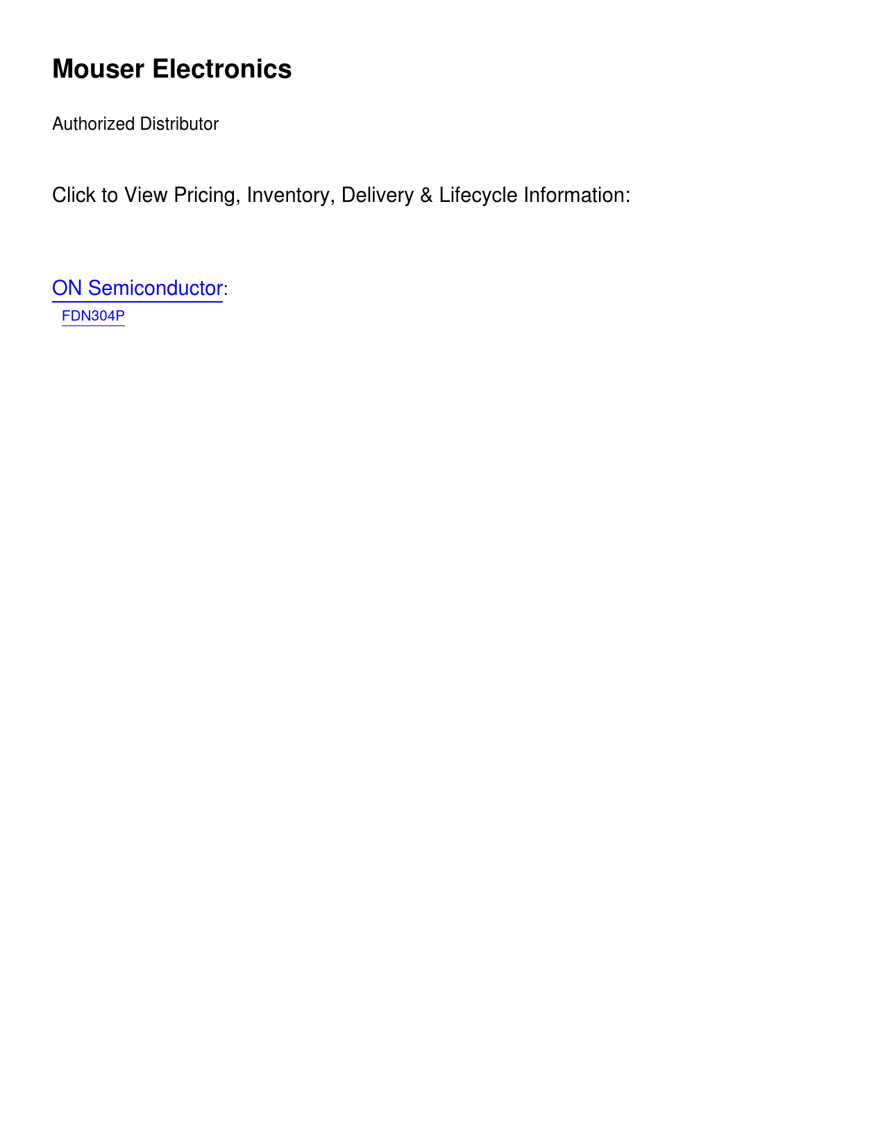 Authorized Distributor Click to View Pricing, Inventory, Delivery & Lifecycle Information: ON Semiconductor: FDN304P