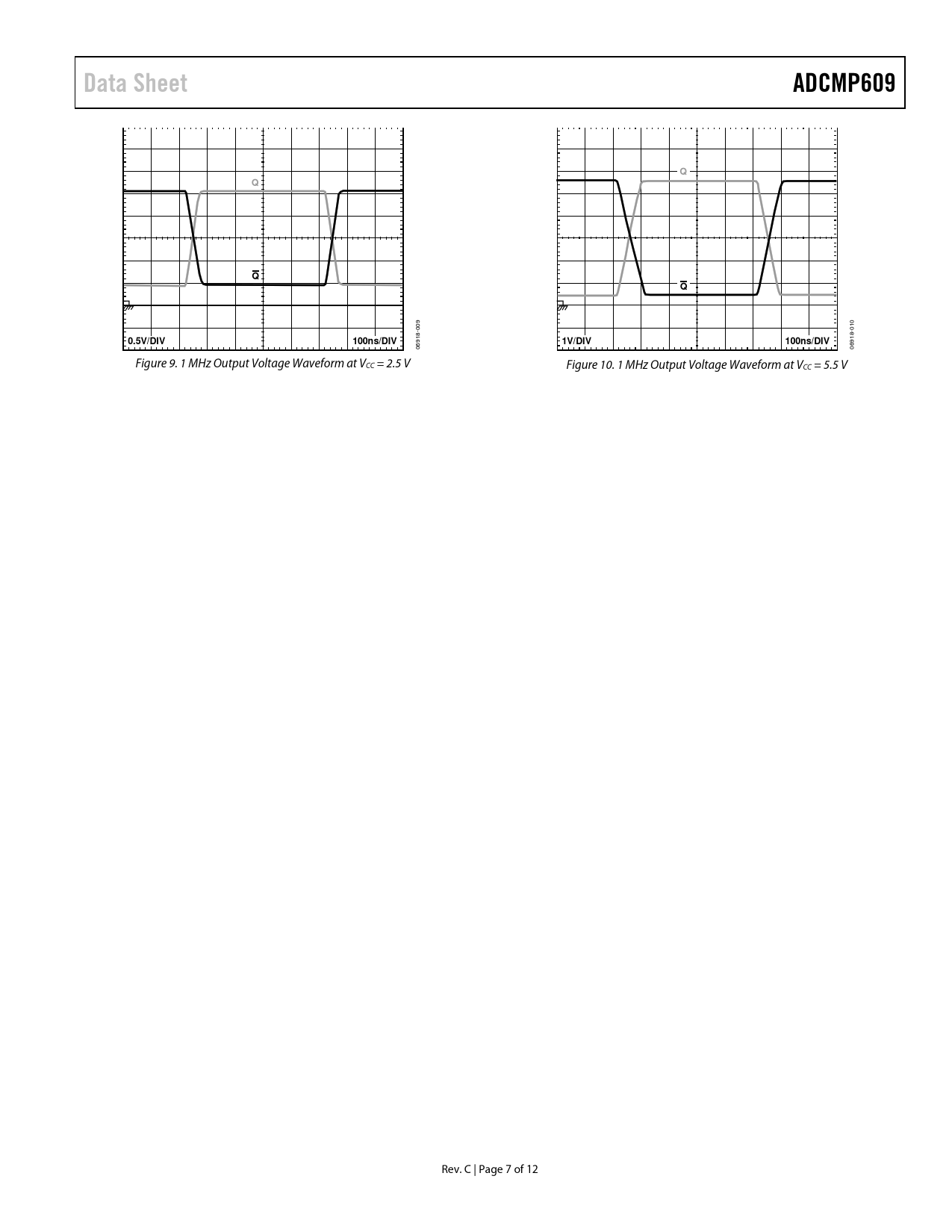 Data Sheet. ADCMP609. 0.5V/DIV. 100ns/DIV. 1V/DIV