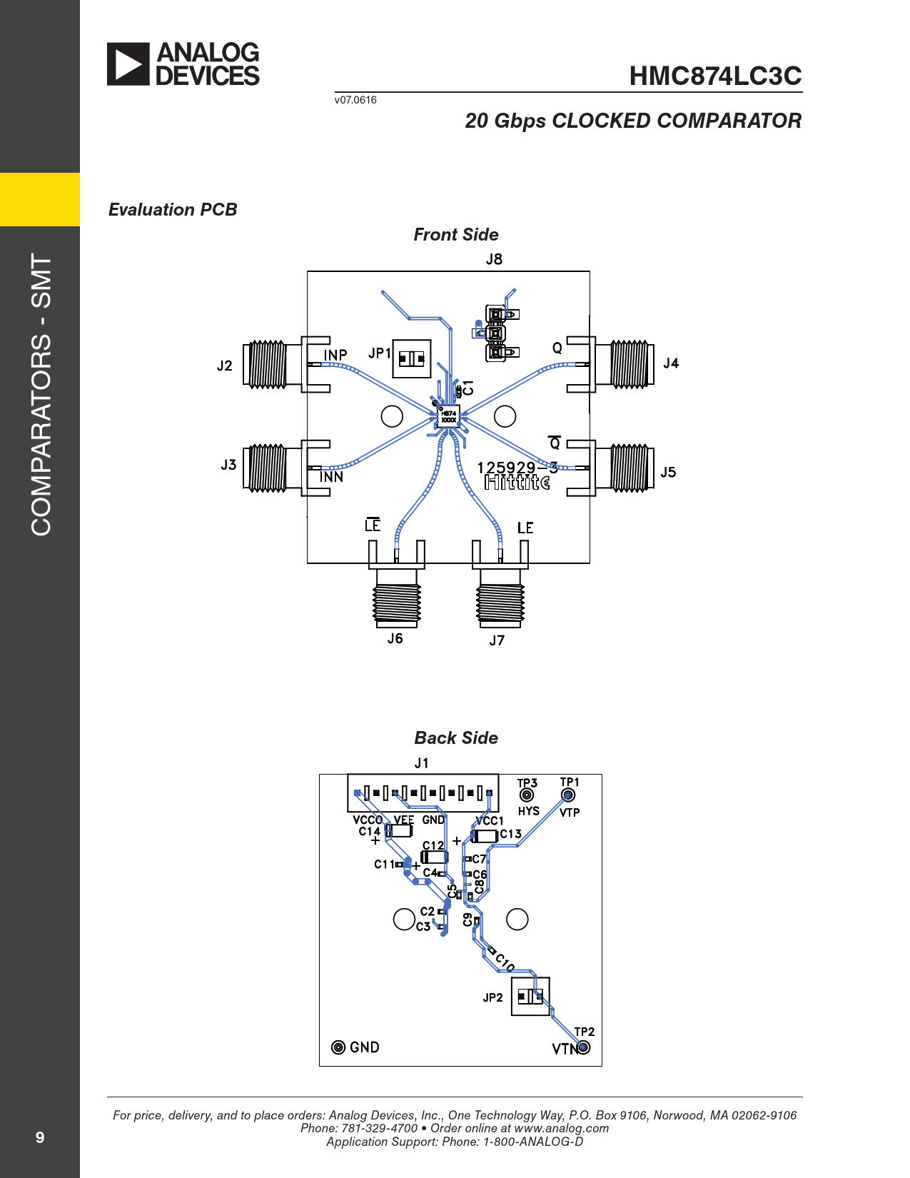 HMC874LC3C. 20 Gbps CLOCKED COMPARATOR. Evaluation PCB. Front Side. Back Side