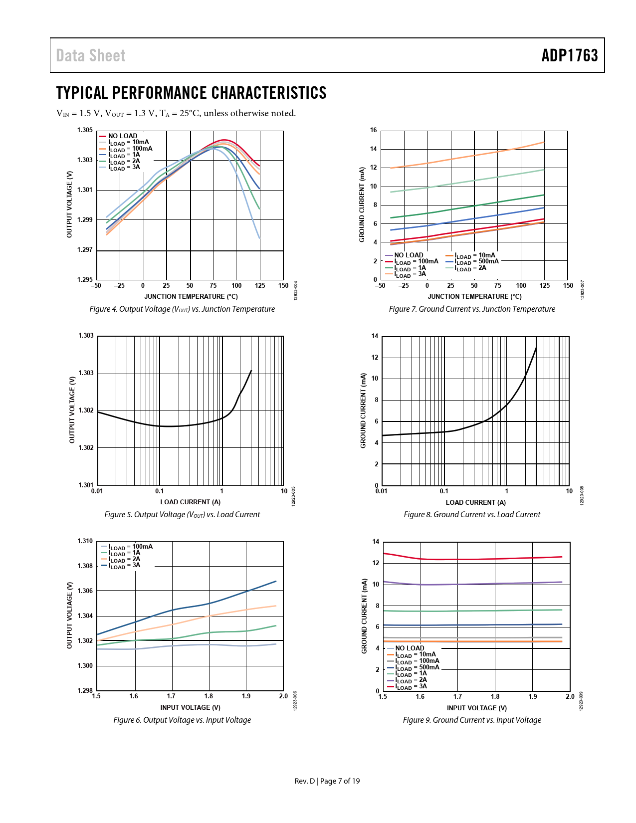 Data Sheet. ADP1763. TYPICAL PERFORMANCE CHARACTERISTICS. 1.305. NO LOAD. ILOAD = 10mA. ILOAD = 100mA. ILOAD = 1A. 1.303. ILOAD = 2A