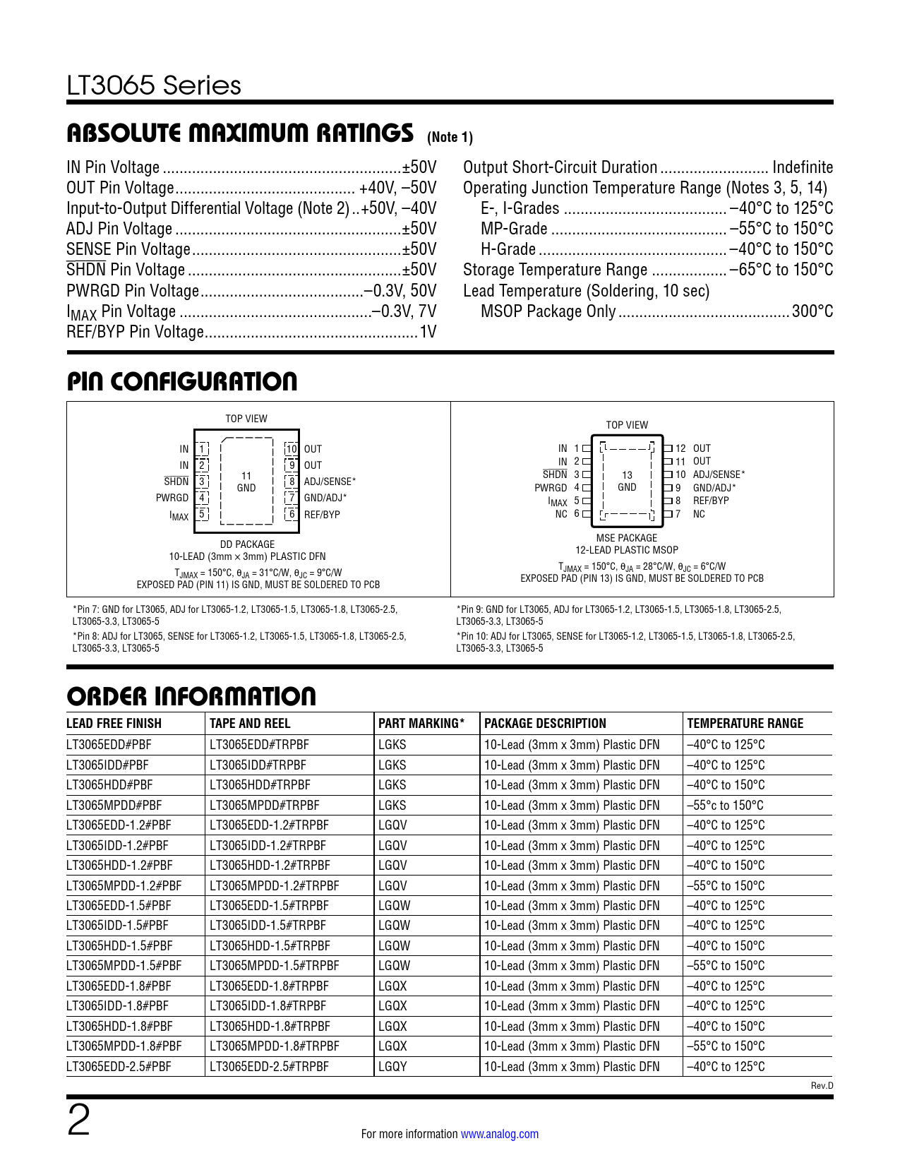 Datasheet LT3065 (Analog Devices) - 2