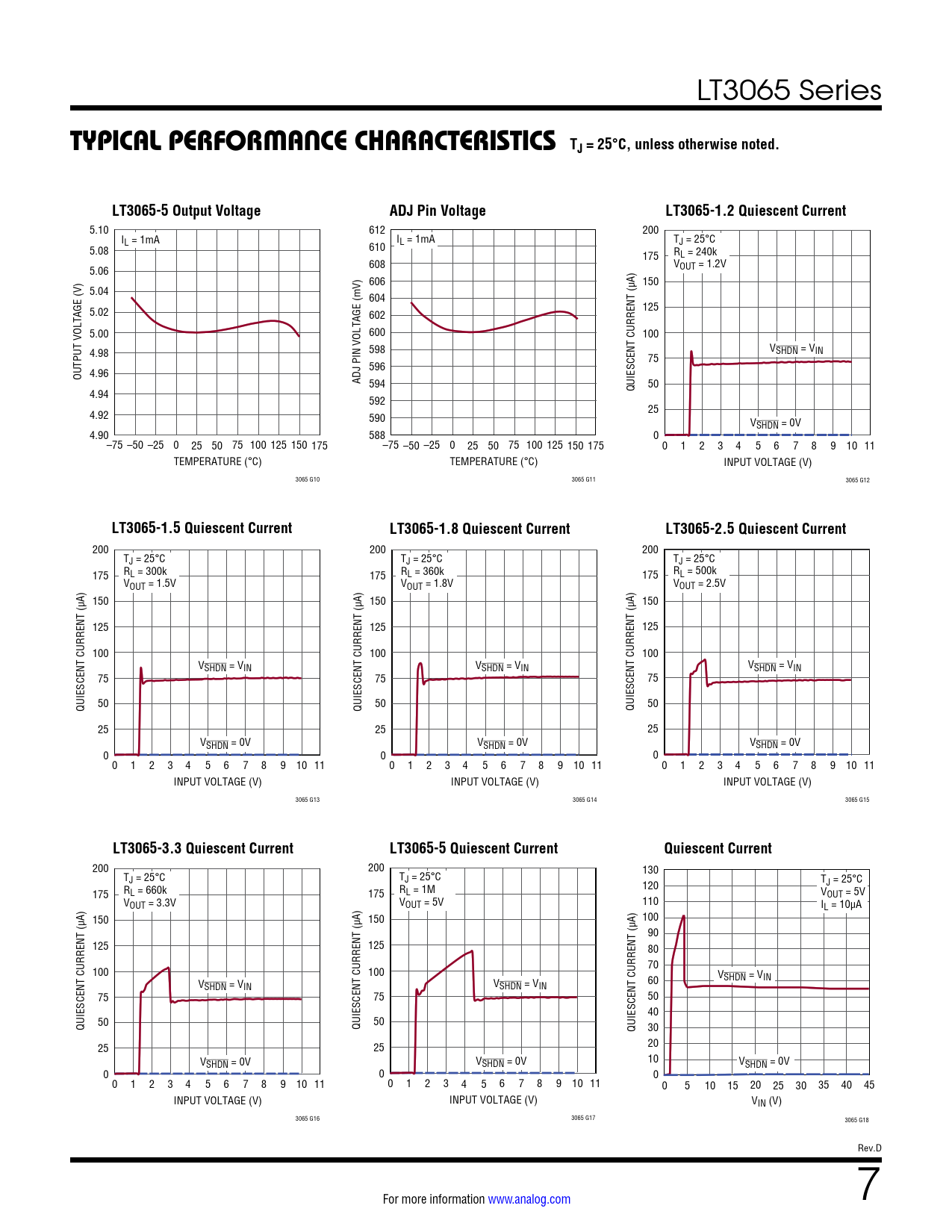 TYPICAL PERFORMANCE CHARACTERISTICS TJ = 25°C, unless otherwise noted. LT3065-5 Output Voltage ADJ Pin Voltage LT3065-1.2 Quiescent Current