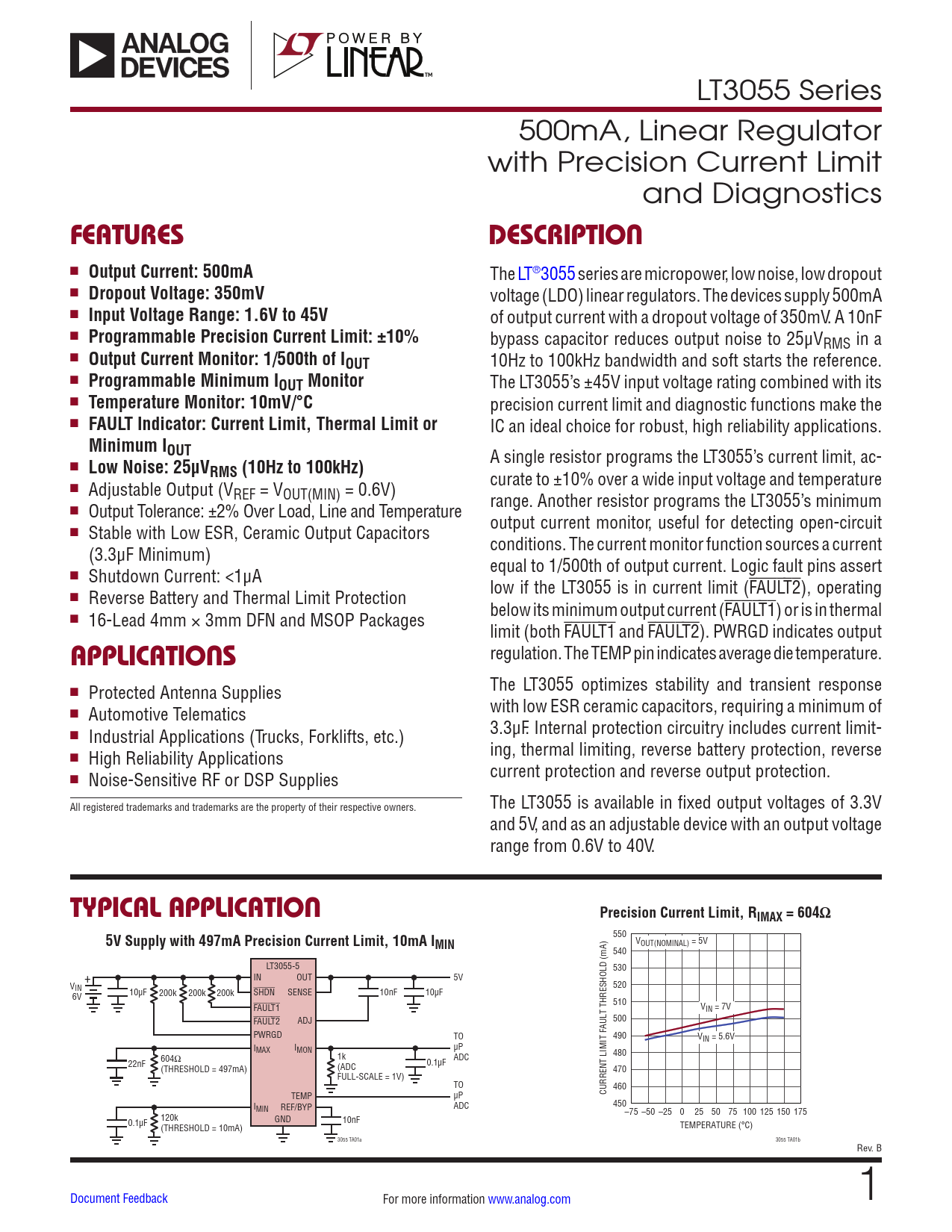 Datasheet LT3055 Analog Devices, Revisión: B