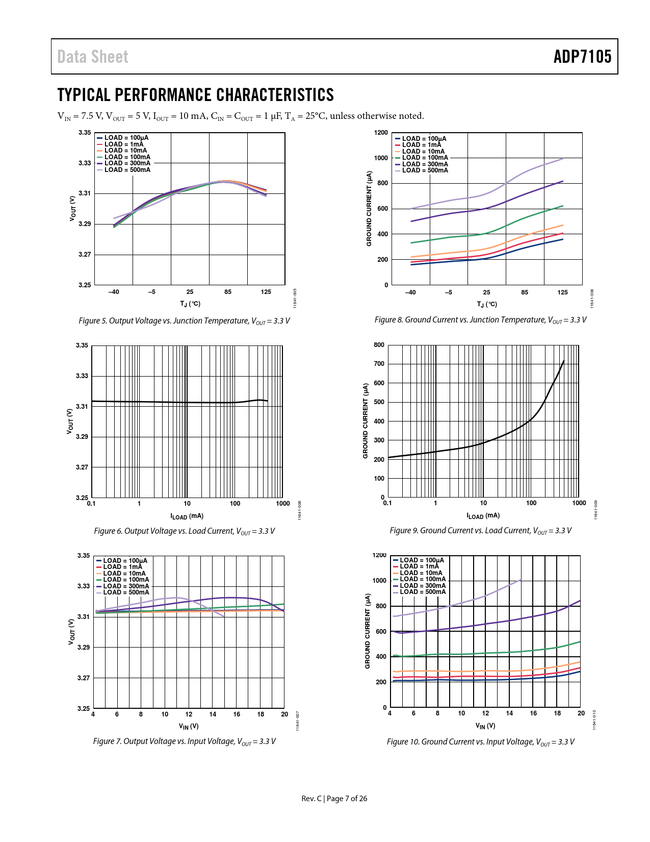 Data Sheet. ADP7105. TYPICAL PERFORMANCE CHARACTERISTICS. 3.35. 1200. LOAD = 100µA. LOAD = 1mA. LOAD = 10mA. LOAD = 100mA. 1000. 3.33
