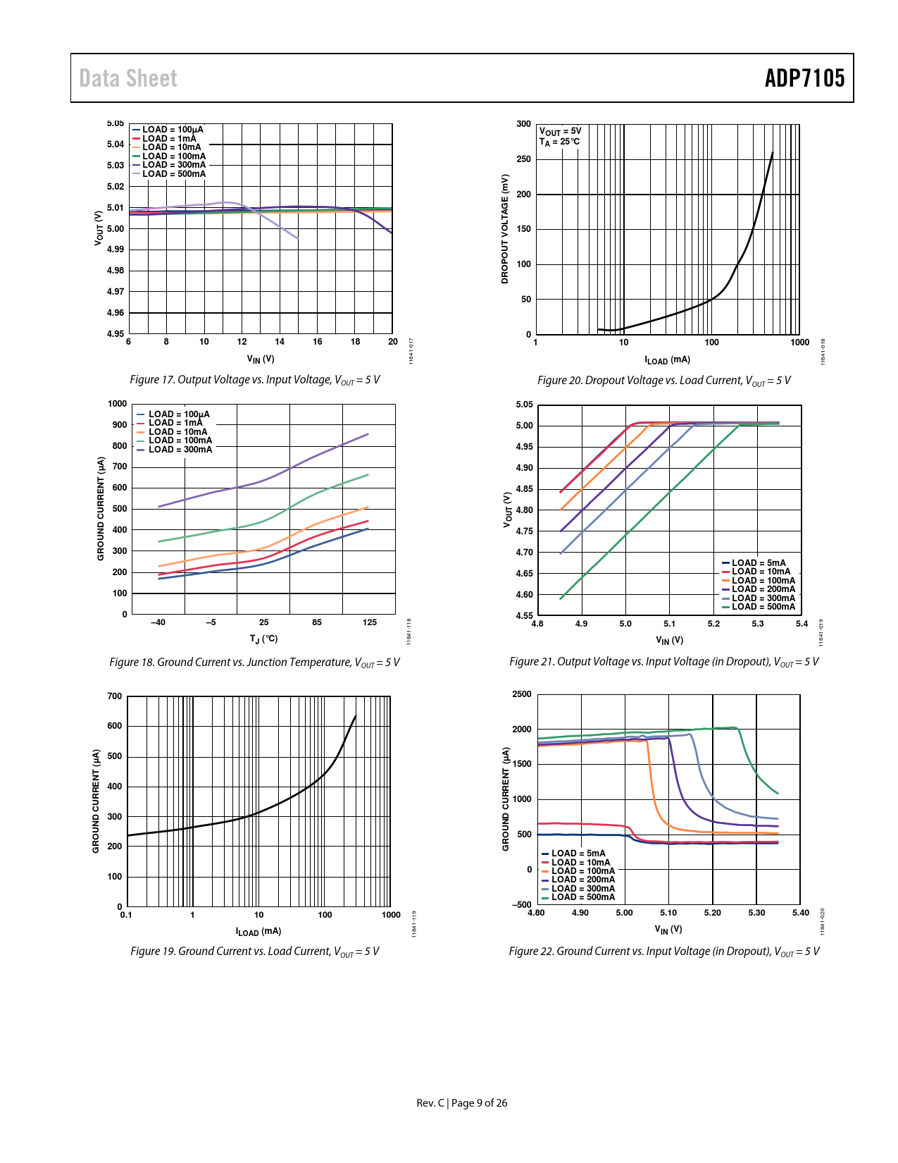 Data Sheet. ADP7105. 5.05. 300. LOAD = 100µA. VOUT = 5V. LOAD = 1mA. 5.04. LOAD = 10mA. A = 25°C. LOAD = 100mA. 250. 5.03