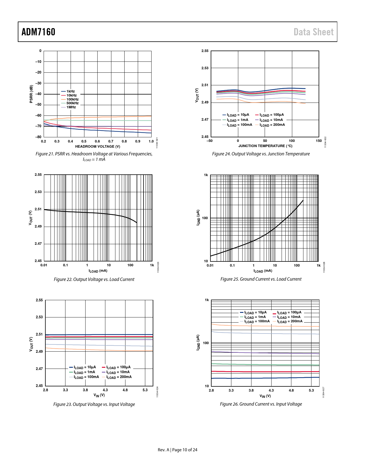 ADM7160. Data Sheet. 2.55. –10. 2.53. –20. –30. 2.51. B) d. 1kHz. –40. (V). 10kHz. RR (. 100kHz. 2.49. –50. 500kHz 1MHz. –60. ILOAD = 10µA. ILOAD = 100µA. 2.47