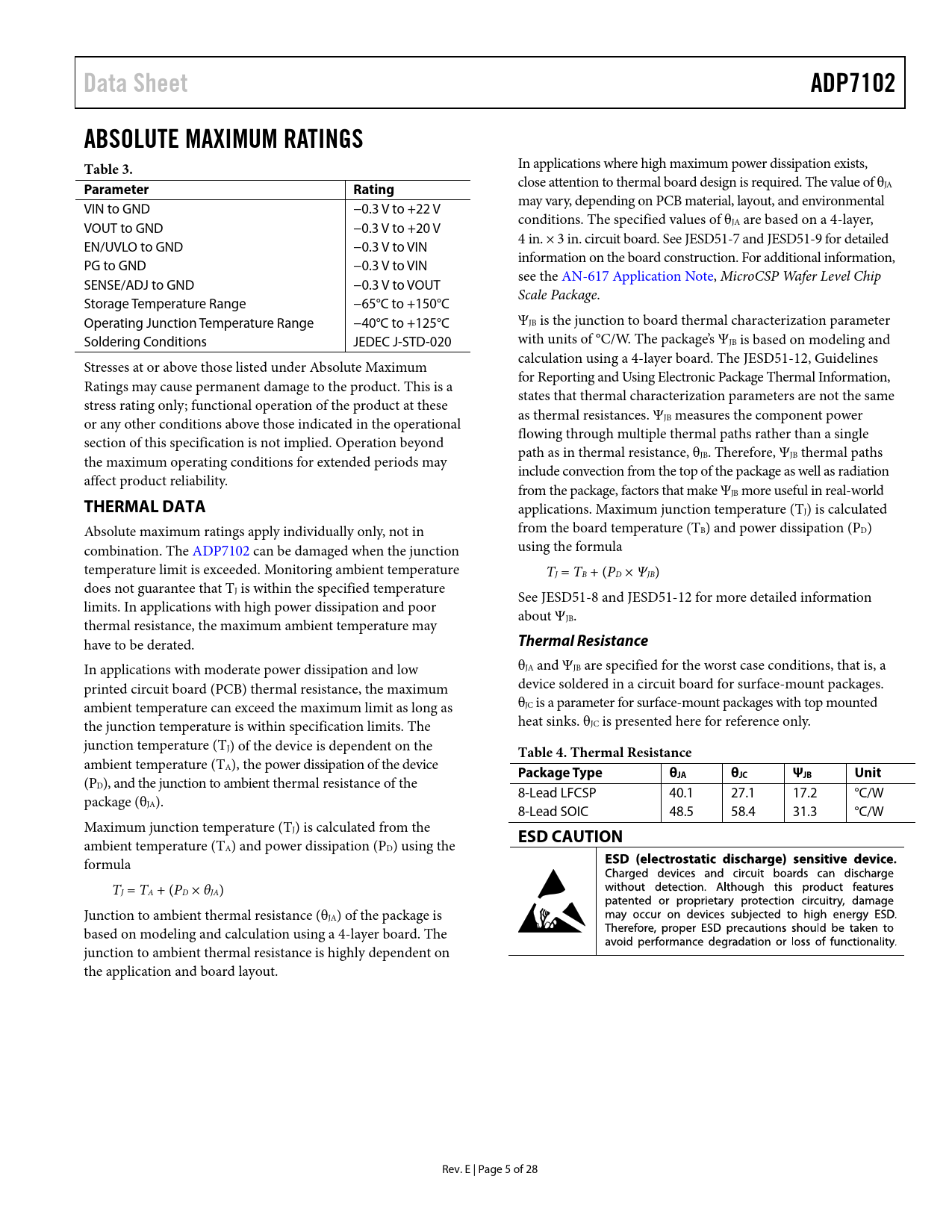 Data Sheet. ADP7102. ABSOLUTE MAXIMUM RATINGS Table 3. Parameter Rating. THERMAL DATA. Thermal Resistance